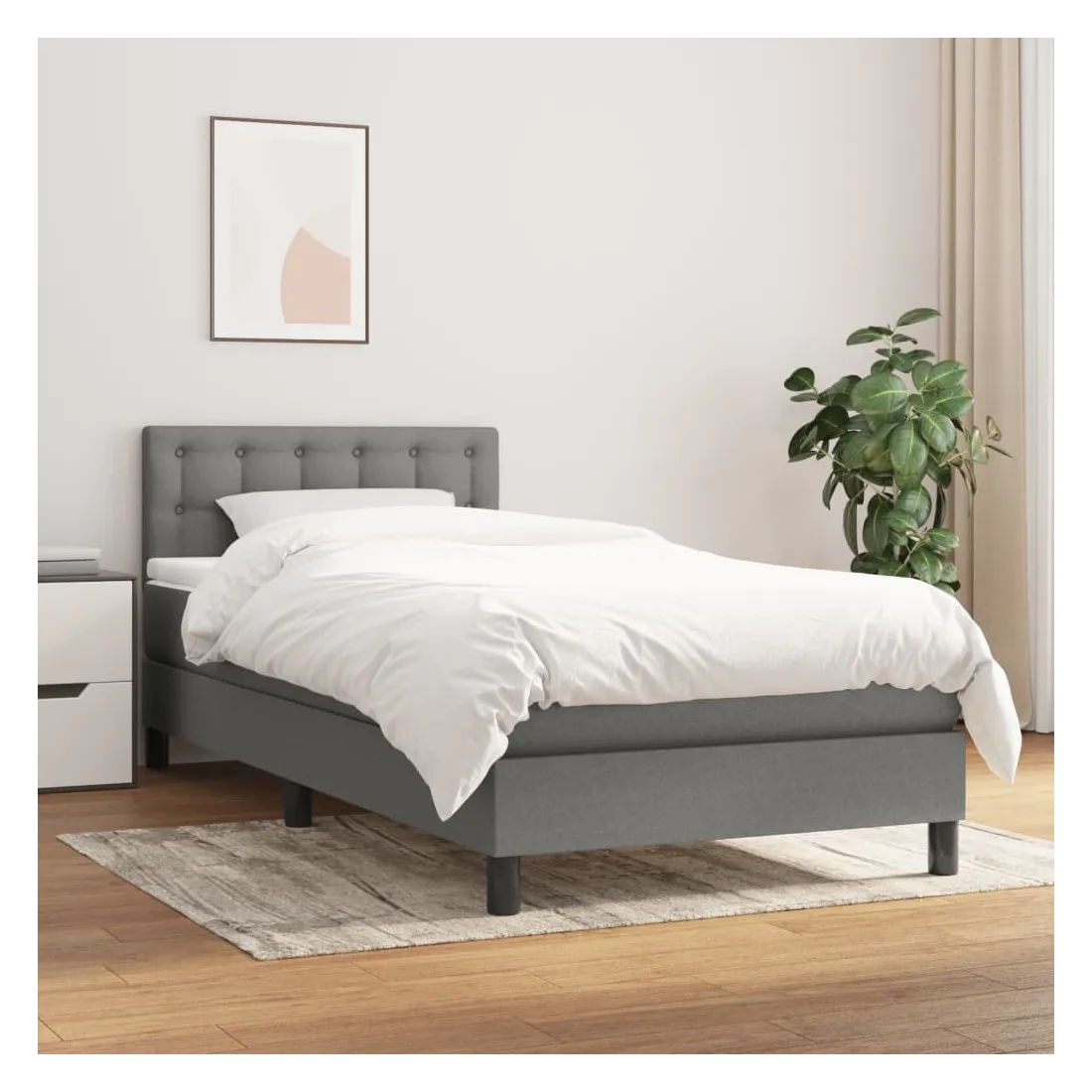 Sommier à lattes de lit avec matelas Gris foncé 100x200cm Tissu