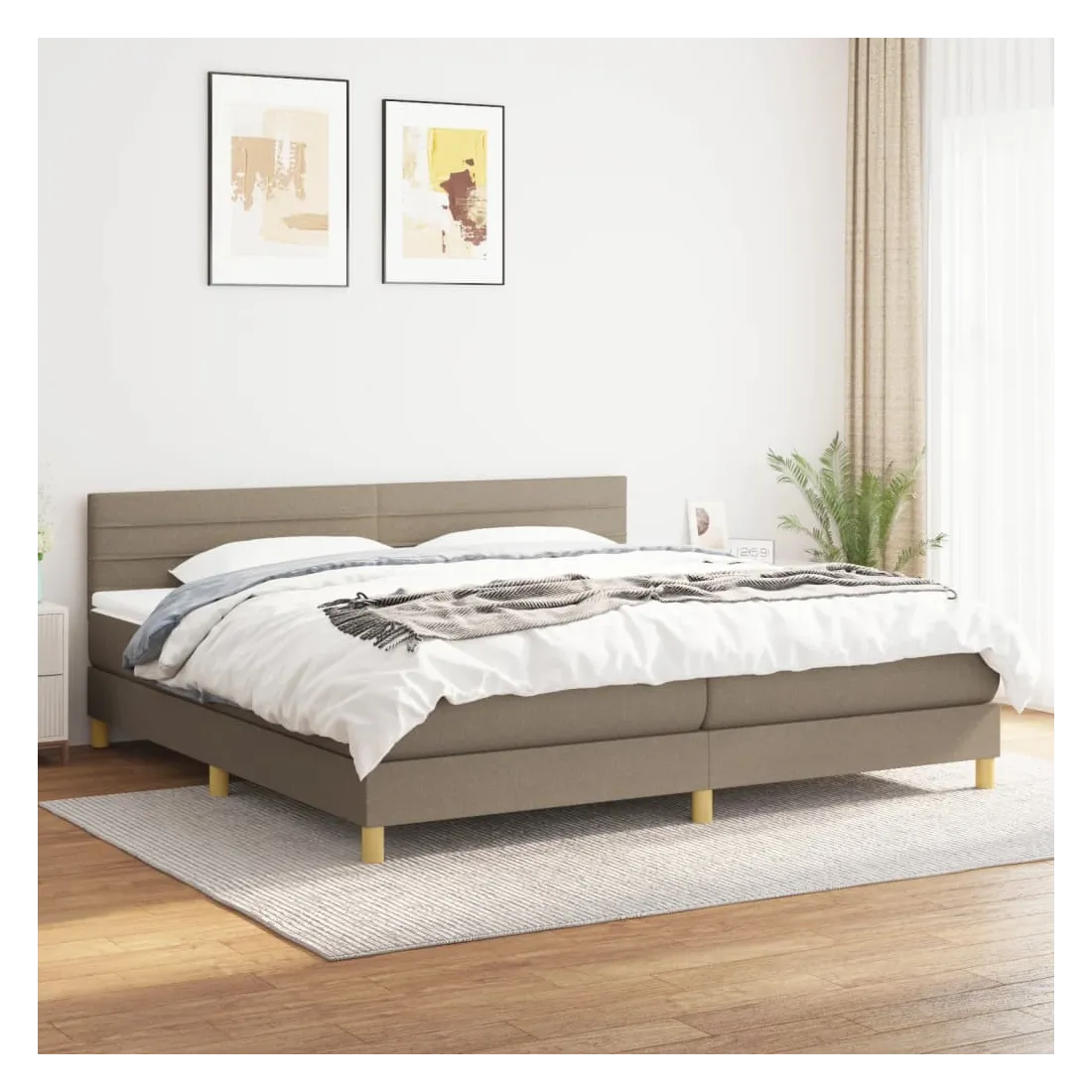Sommier à lattes de lit avec matelas Taupe 200x200 cm Tissu