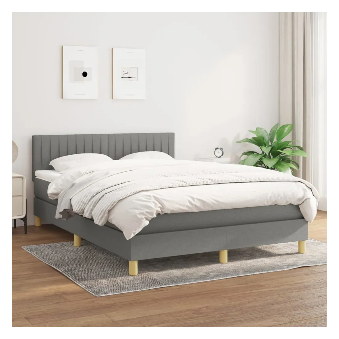 Sommier à lattes de lit avec matelas Gris foncé 140x200cm Tissu