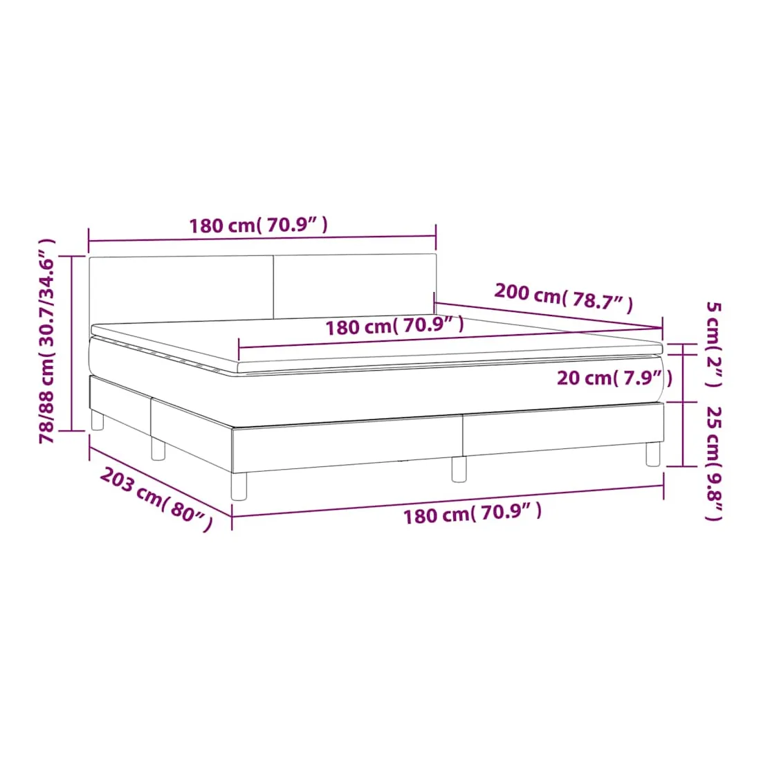 Utilisez ce lit à sommier pour profiter d'une nuit de sommeil réparatrice ! Il vous offre une relaxation maximale et un sommeil agréable. Velours doux : le velours est un tissu doux et luxueux qui se reconnaît à son tas dense de fibres uniformément coupées qui ont une touche lisse. Le tissu en velours présente un toucher doux distinctif, ce qui le rend confortable au toucher.Tête de lit pratique : la tête de lit est réglable en hauteur selon vos préférences. La tête de lit vous offre un excellent soutien du dos lorsque vous êtes assis dans votre lit pour lire ou regarder la télévision.Matelas à ressorts ensachés : le ressort ensaché individuel intégré est connu pour sa très haute qualité tout en assurant un haut niveau de durabilité et d'adaptabilité. Il peut absorber efficacement le bruit et les chocs causés par les sauts et les rotations.Support moyen-dur : ce matelas de lit offre une stabilité accrue et juste le niveau de fermeté sans sacrifier le confort. Il est donc idéal pour les personnes qui dorment sur le dos ou sur le ventre.Protège-matelas doux pour la peau : le protège-matelas est recouvert d'un tissu résistant et doux pour la peau, ce qui le rend souple et confortable. Remarque :Pour des raisons d'hygiène, le matelas ne peut pas être retourné si l'emballage est retiré ou ouvert.Chaque produit est livré avec un manuel de montage dans la boîte pour un montage facile.