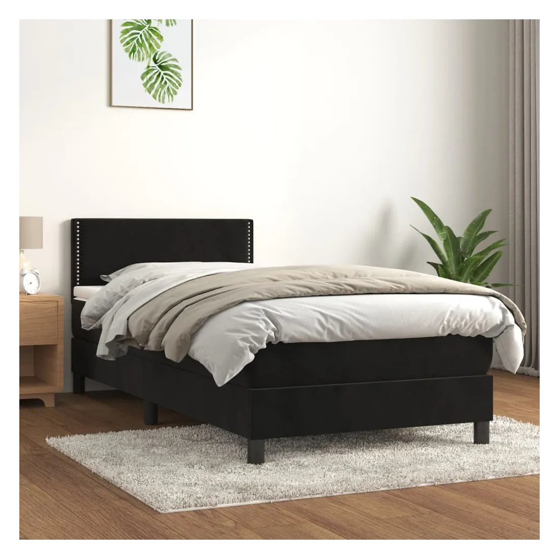 Sommier à lattes de lit avec matelas Noir 90x200 cm Velours