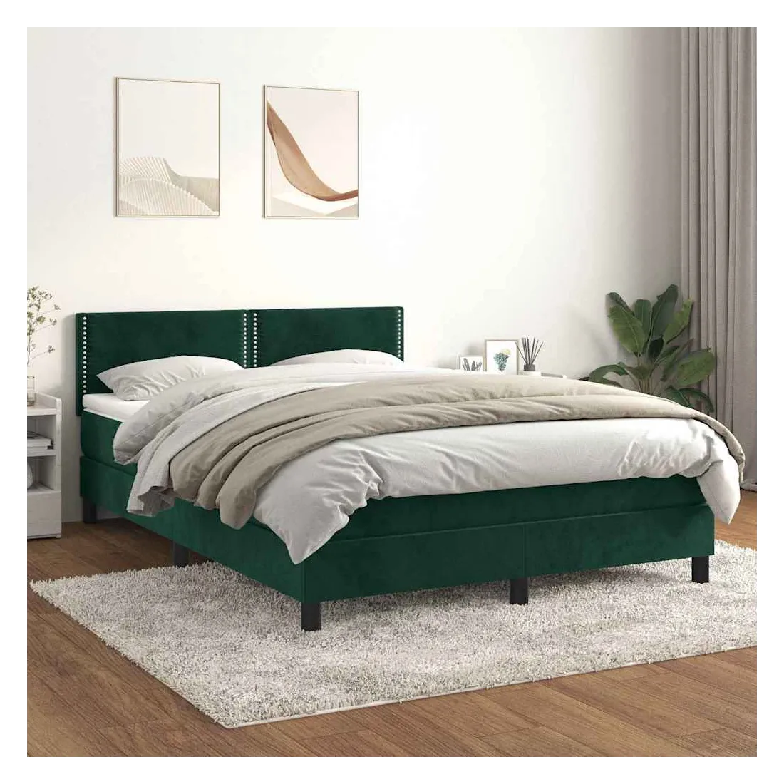Utilisez ce lit à sommier pour profiter d'une nuit de sommeil réparatrice ! Il vous offre une relaxation maximale et un sommeil agréable. Velours doux : le velours est un tissu doux et luxueux qui se reconnaît à son tas dense de fibres uniformément coupées qui ont une touche lisse. Le tissu en velours présente un toucher doux distinctif, ce qui le rend confortable au toucher.Tête de lit pratique : la tête de lit est réglable en hauteur selon vos préférences. La tête de lit vous offre un excellent soutien du dos lorsque vous êtes assis dans votre lit pour lire ou regarder la télévision.Matelas à ressorts ensachés : le ressort ensaché individuel intégré est connu pour sa très haute qualité tout en assurant un haut niveau de durabilité et d'adaptabilité. Il peut absorber efficacement le bruit et les chocs causés par les sauts et les rotations.Support moyen-dur : ce matelas de lit offre une stabilité accrue et juste le niveau de fermeté sans sacrifier le confort. Il est donc idéal pour les personnes qui dorment sur le dos ou sur le ventre.Protège-matelas doux pour la peau : le protège-matelas est recouvert d'un tissu résistant et doux pour la peau, ce qui le rend souple et confortable. Remarque :Pour des raisons d'hygiène, le matelas ne peut pas être retourné si l'emballage est retiré ou ouvert.Chaque produit est livré avec un manuel de montage dans la boîte pour un montage facile.