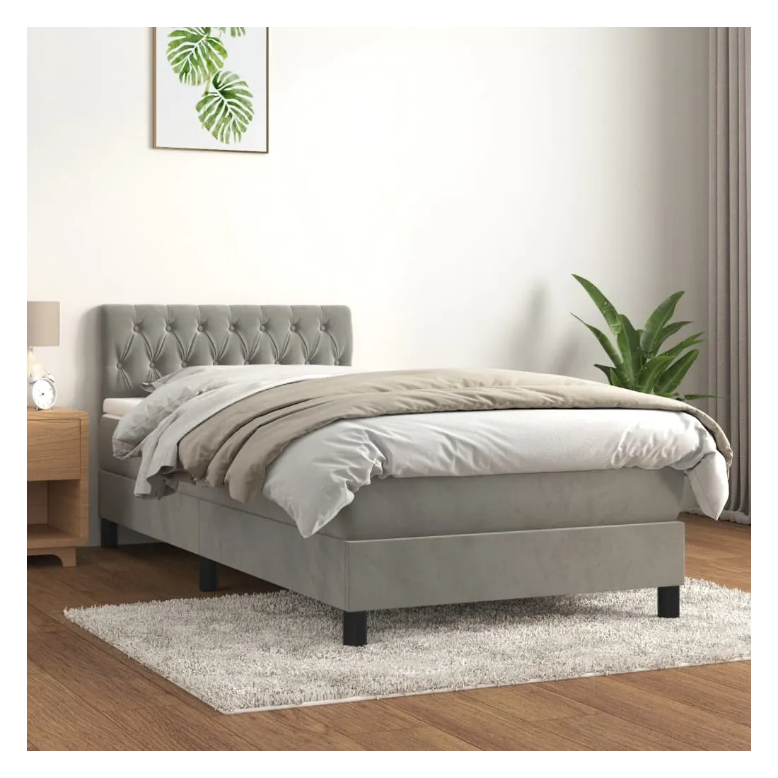 Utilisez ce lit à sommier pour profiter d'une nuit de sommeil réparatrice ! Il vous offre une relaxation maximale et un sommeil agréable. Velours doux : le velours est un tissu doux et luxueux qui se reconnaît à son tas dense de fibres uniformément coupées qui ont une touche lisse. Le tissu en velours présente un toucher doux distinctif, ce qui le rend confortable au toucher.Tête de lit pratique : la tête de lit est réglable en hauteur selon vos préférences. La tête de lit vous offre un excellent soutien du dos lorsque vous êtes assis dans votre lit pour lire ou regarder la télévision.Matelas à ressorts ensachés : le ressort ensaché individuel intégré est connu pour sa très haute qualité tout en assurant un haut niveau de durabilité et d'adaptabilité. Il peut absorber efficacement le bruit et les chocs causés par les sauts et les rotations.Support moyen-dur : ce matelas de lit offre une stabilité accrue et juste le niveau de fermeté sans sacrifier le confort. Il est donc idéal pour les personnes qui dorment sur le dos ou sur le ventre.Protège-matelas doux pour la peau : le protège-matelas est recouvert d'un tissu résistant et doux pour la peau, ce qui le rend souple et confortable. Remarque :Pour des raisons d'hygiène, le matelas ne peut pas être retourné si l'emballage est retiré ou ouvert.Chaque produit est livré avec un manuel de montage dans la boîte pour un montage facile.