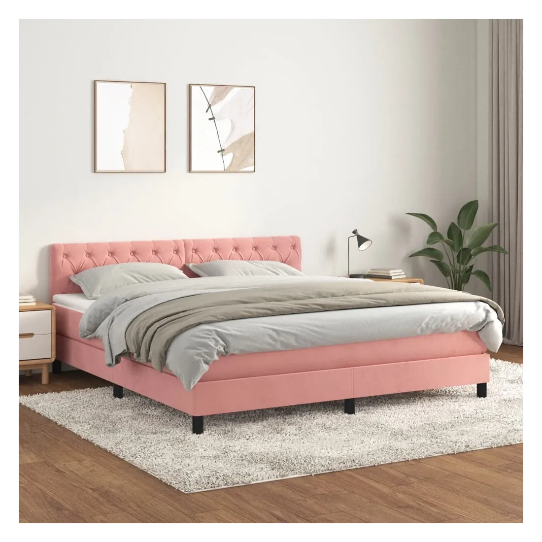 Utilisez ce lit à sommier pour profiter d'une nuit de sommeil réparatrice ! Il vous offre une relaxation maximale et un sommeil agréable. Velours doux : le velours est un tissu doux et luxueux qui se reconnaît à son tas dense de fibres uniformément coupées qui ont une touche lisse. Le tissu en velours présente un toucher doux distinctif, ce qui le rend confortable au toucher.Tête de lit pratique : la tête de lit est réglable en hauteur selon vos préférences. La tête de lit vous offre un excellent soutien du dos lorsque vous êtes assis dans votre lit pour lire ou regarder la télévision.Matelas à ressorts ensachés : le ressort ensaché individuel intégré est connu pour sa très haute qualité tout en assurant un haut niveau de durabilité et d'adaptabilité. Il peut absorber efficacement le bruit et les chocs causés par les sauts et les rotations.Support moyen-dur : ce matelas de lit offre une stabilité accrue et juste le niveau de fermeté sans sacrifier le confort. Il est donc idéal pour les personnes qui dorment sur le dos ou sur le ventre.Protège-matelas doux pour la peau : le protège-matelas est recouvert d'un tissu résistant et doux pour la peau, ce qui le rend souple et confortable. Remarque :Pour des raisons d'hygiène, le matelas ne peut pas être retourné si l'emballage est retiré ou ouvert.Chaque produit est livré avec un manuel de montage dans la boîte pour un montage facile.