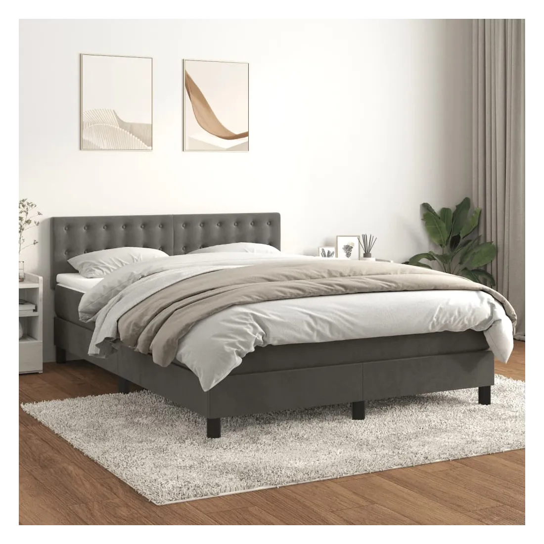 Utilisez ce lit à sommier pour profiter d'une nuit de sommeil réparatrice ! Il vous offre une relaxation maximale et un sommeil agréable. Velours doux : le velours est un tissu doux et luxueux qui se reconnaît à son tas dense de fibres uniformément coupées qui ont une touche lisse. Le tissu en velours présente un toucher doux distinctif, ce qui le rend confortable au toucher.Tête de lit pratique : la tête de lit est réglable en hauteur selon vos préférences. La tête de lit vous offre un excellent soutien du dos lorsque vous êtes assis dans votre lit pour lire ou regarder la télévision.Matelas à ressorts ensachés : le ressort ensaché individuel intégré est connu pour sa très haute qualité tout en assurant un haut niveau de durabilité et d'adaptabilité. Il peut absorber efficacement le bruit et les chocs causés par les sauts et les rotations.Support moyen-dur : ce matelas de lit offre une stabilité accrue et juste le niveau de fermeté sans sacrifier le confort. Il est donc idéal pour les personnes qui dorment sur le dos ou sur le ventre.Protège-matelas doux pour la peau : le protège-matelas est recouvert d'un tissu résistant et doux pour la peau, ce qui le rend souple et confortable. Remarque :Pour des raisons d'hygiène, le matelas ne peut pas être retourné si l'emballage est retiré ou ouvert.Chaque produit est livré avec un manuel de montage dans la boîte pour un montage facile.