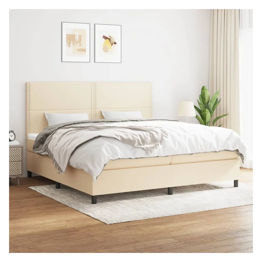 Sommier à lattes de lit avec matelas Crème 200x200 cm Tissu