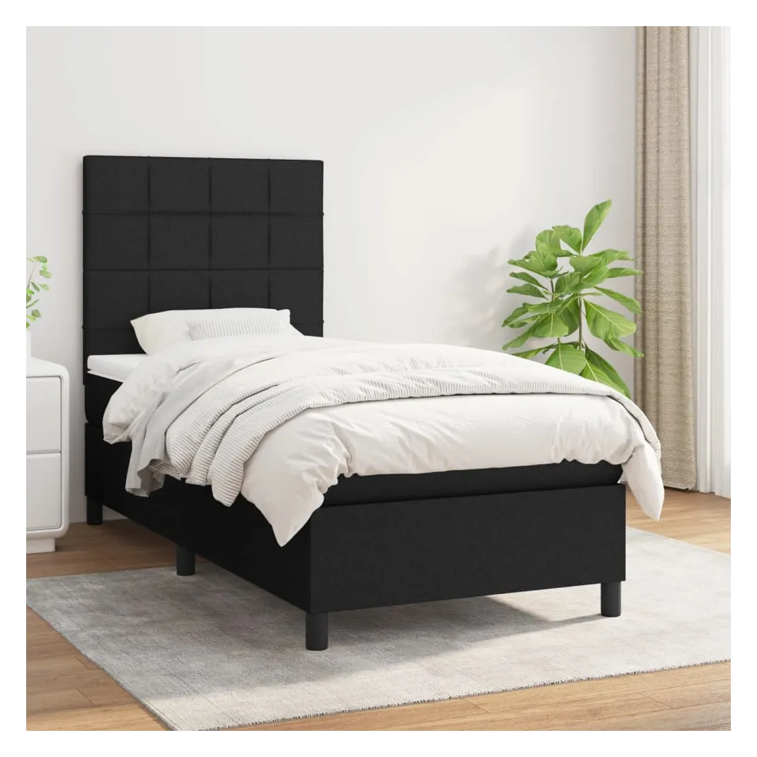 Sommier à lattes de lit avec matelas Noir 90x200 cm Tissu