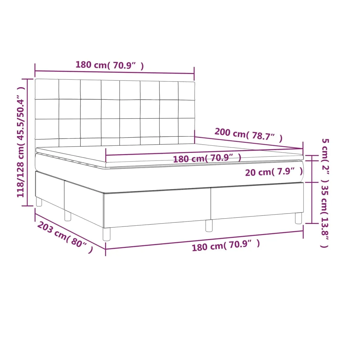 • Dimensions : 180 x 200 x 20 cm (l x L x H)