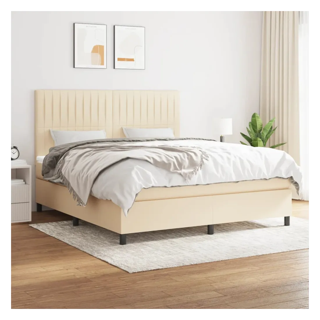 Sommier à lattes de lit avec matelas Crème 180x200 cm Tissu