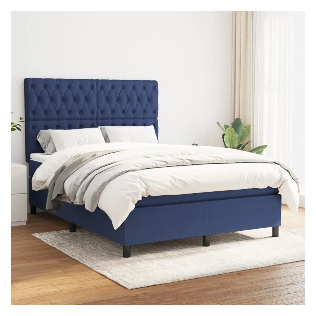 Sommier à lattes de lit avec matelas Bleu 140x200 cm Tissu