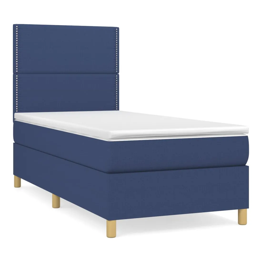 Sommier à lattes de lit avec matelas Bleu 90x200 cm Tissu