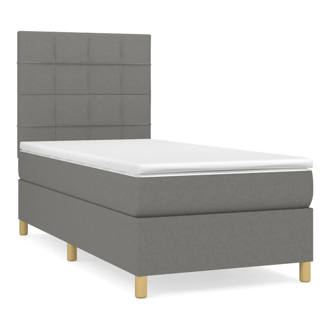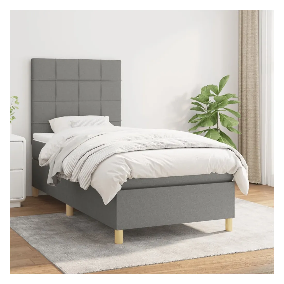 Sommier à lattes de lit avec matelas Gris foncé 90x200 cm Tissu