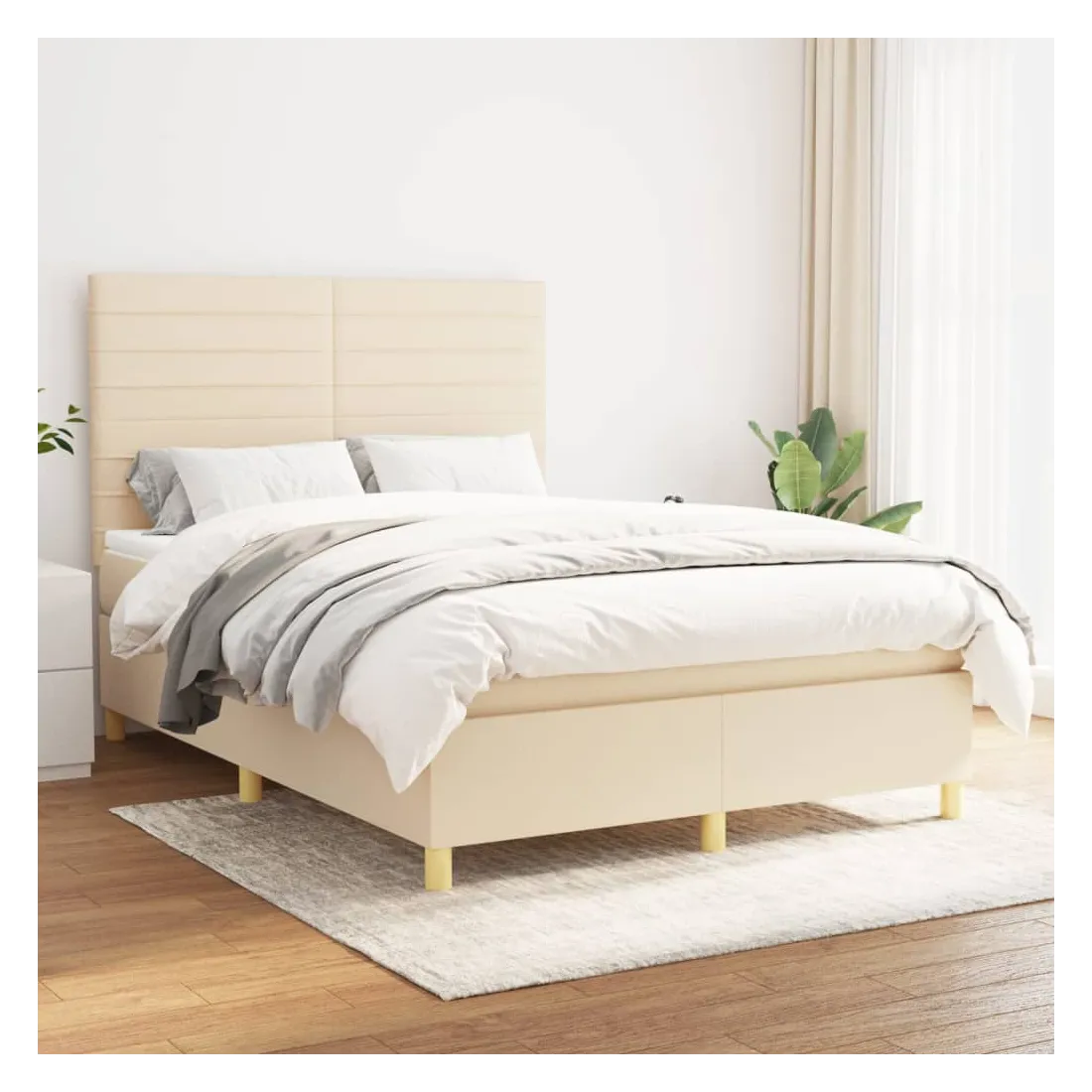 Sommier à lattes de lit avec matelas Crème 140x200 cm Tissu