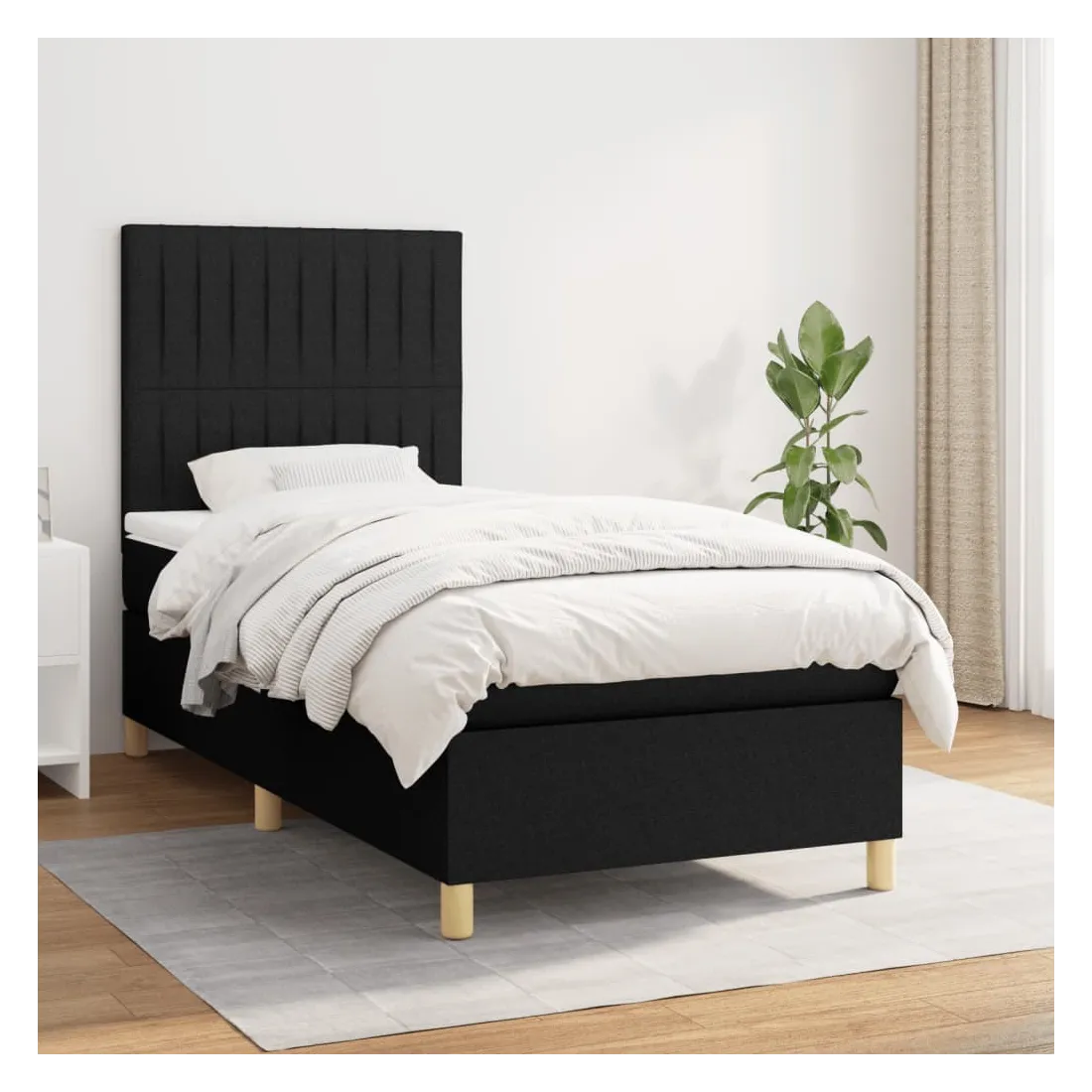Sommier à lattes de lit avec matelas Noir 90x200 cm Tissu