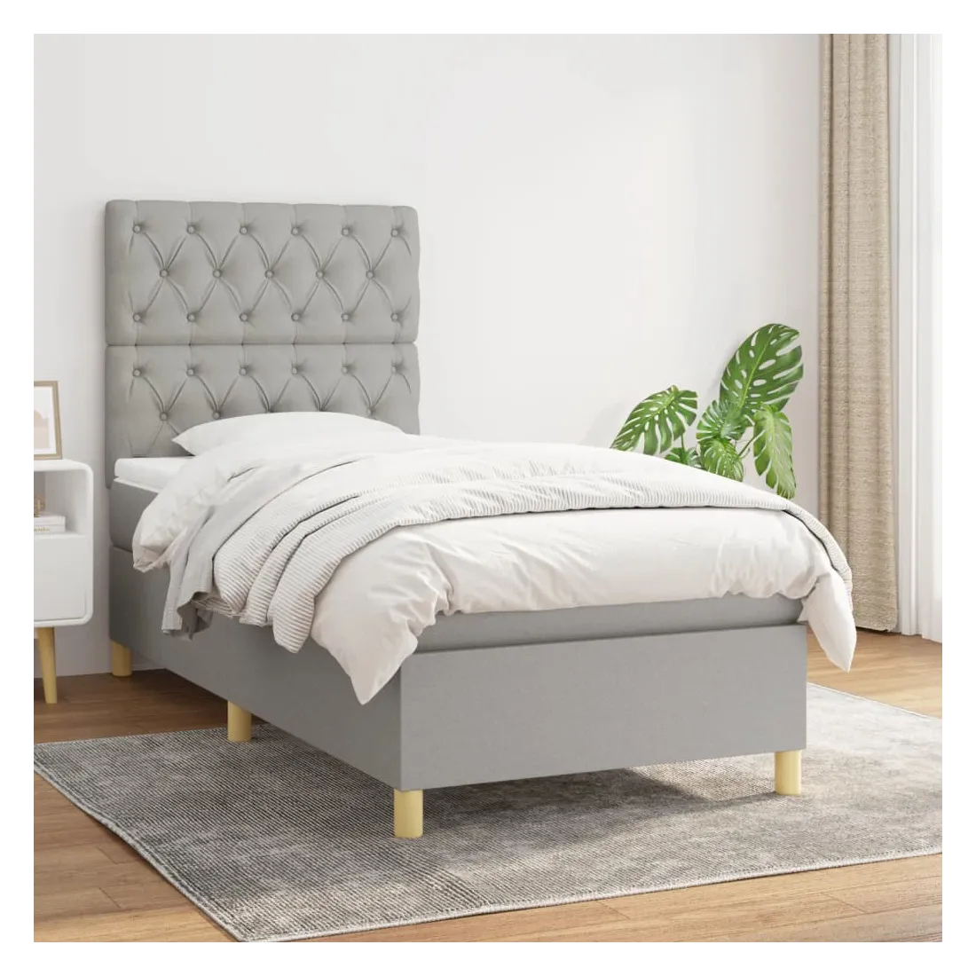Utilisez ce lit à sommier pour profiter d'une nuit de sommeil réparatrice ! Il vous offre une relaxation maximale et un sommeil agréable. Tissu durable : le tissu présente un aspect simple et épuré, et il est respirant et durable.Tête de lit pratique : la tête de lit est réglable en hauteur selon vos préférences. La tête de lit vous offre un excellent soutien du dos lorsque vous êtes assis dans votre lit pour lire ou regarder la télévision.Matelas à ressorts ensachés : le ressort ensaché individuel intégré est connu pour sa très haute qualité tout en assurant un haut niveau de durabilité et d'adaptabilité. Il peut absorber efficacement le bruit et les chocs causés par les sauts et les rotations.Support moyen-dur : ce matelas de lit offre une stabilité accrue et juste le niveau de fermeté sans sacrifier le confort. Il est donc idéal pour les personnes qui dorment sur le dos ou sur le ventre.Protège-matelas doux pour la peau : le protège-matelas est recouvert d'un tissu résistant et doux pour la peau, ce qui le rend souple et confortable. Remarque :Pour des raisons d'hygiène, le matelas ne peut pas être retourné si l'emballage est retiré ou ouvert.Chaque produit est livré avec un manuel de montage dans la boîte pour un montage facile.