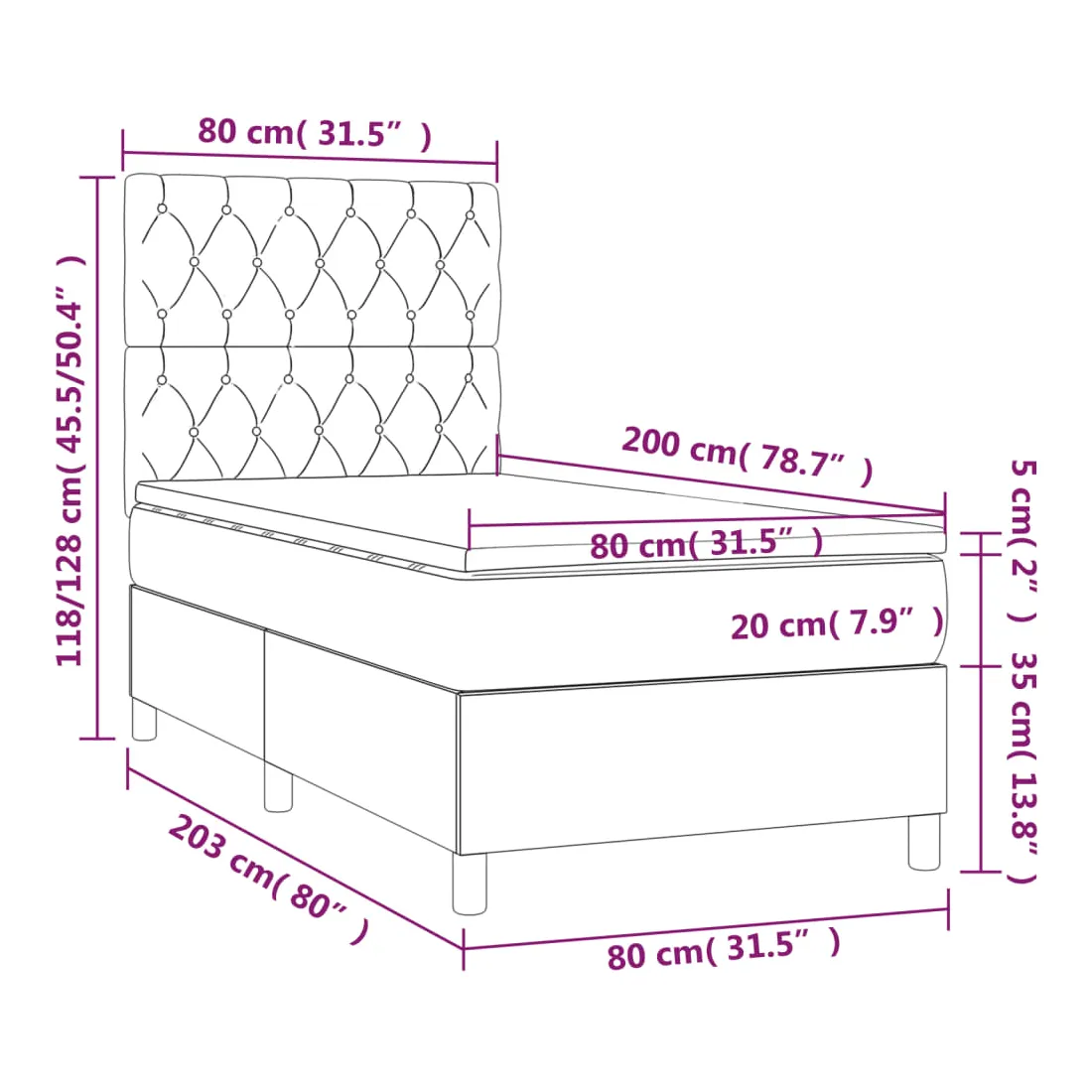 - Dimensions: 203 x 80 x 118/128 cm (L x l x H)