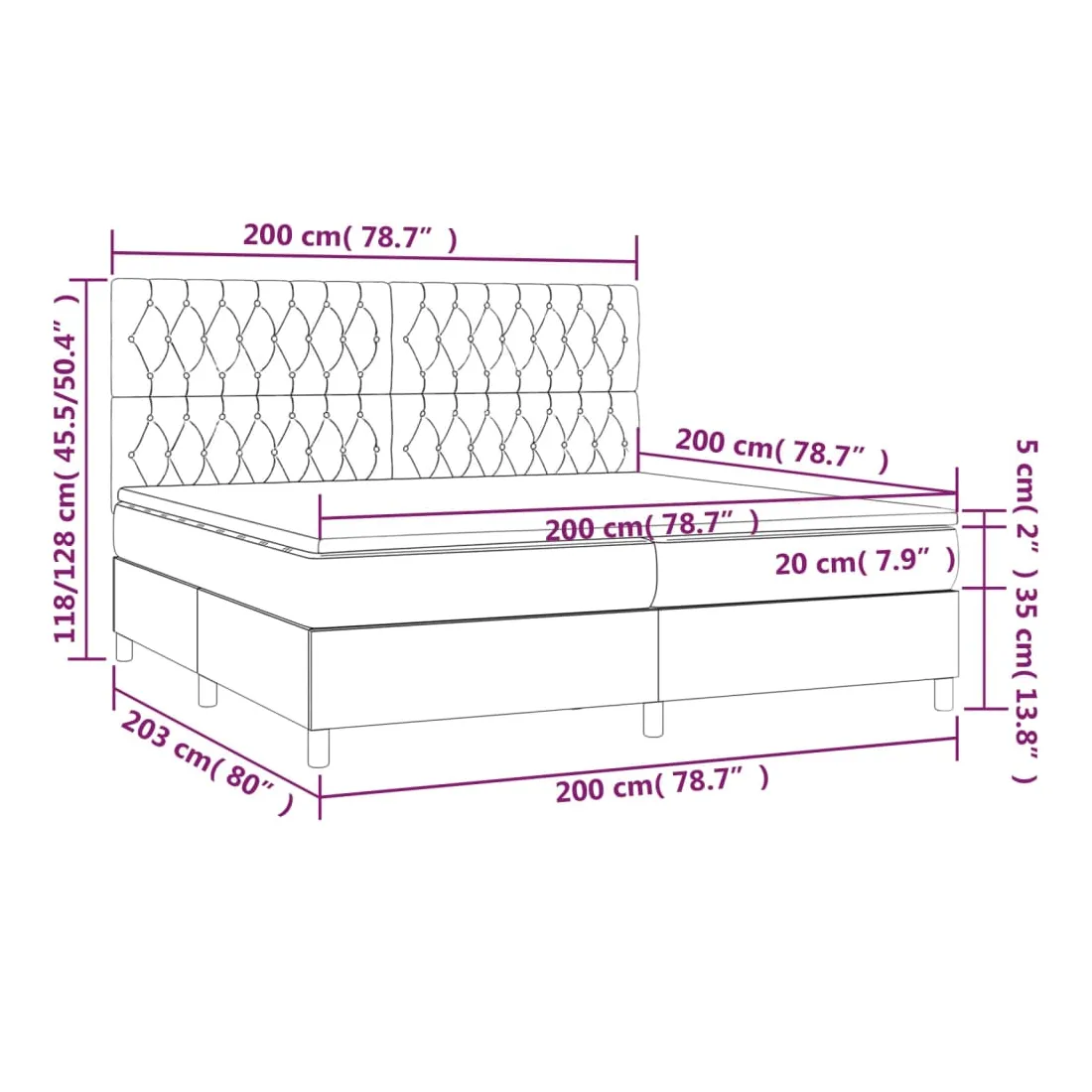 • Dimensions: 203 x 200 x 118/128 cm (L x l x H)
