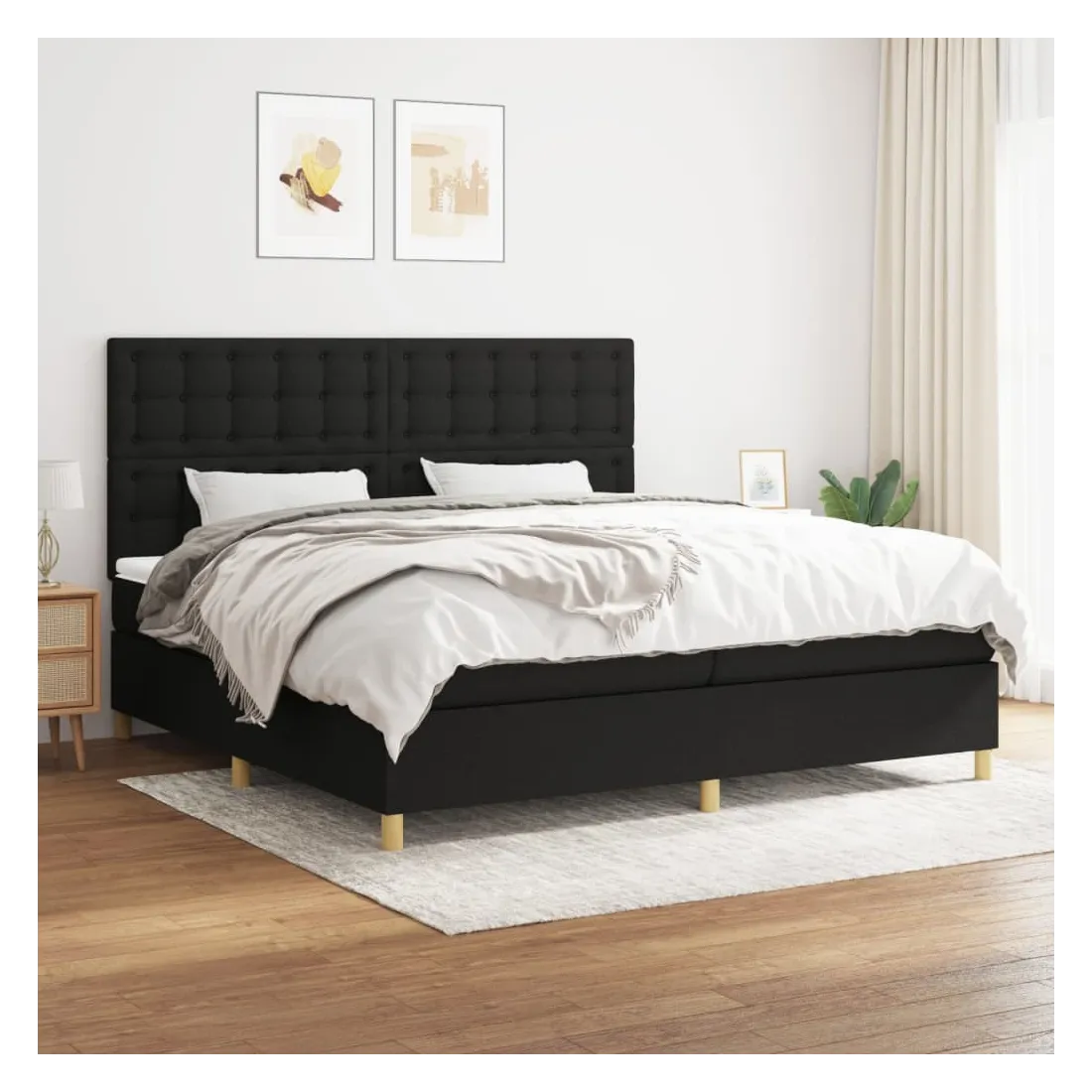 Sommier à lattes de lit avec matelas Noir 200x200 cm Tissu