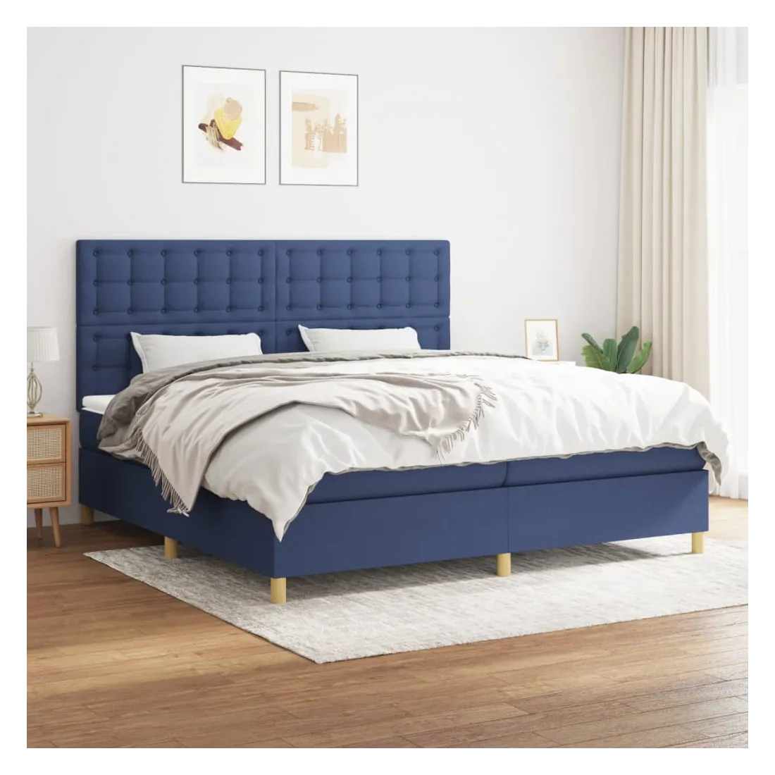 Sommier à lattes de lit avec matelas Bleu 200x200 cm Tissu