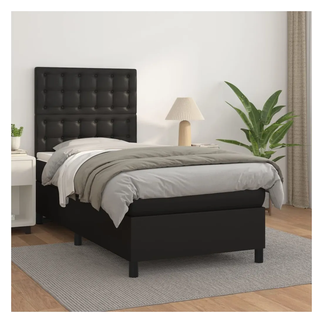 Sommier à lattes de lit avec matelas Noir 90x190 cm Similicuir
