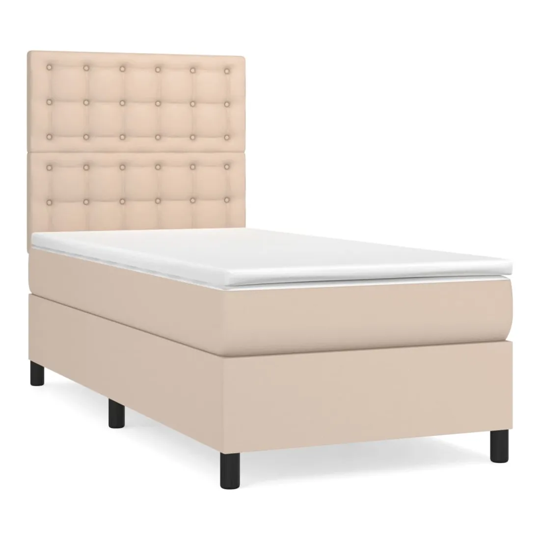 Utilisez ce lit à sommier pour profiter d'une nuit de sommeil réparatrice ! Il vous offre une relaxation maximale et un sommeil agréable. Similicuir durable : le similicuir de qualité supérieure est un matériau très durable. Il est résistant aux taches, ce qui le rend facile à nettoyer avec un chiffon humide. La surface lisse donne également un aspect luxueux et la beauté du cuir véritable. Tête de lit pratique : la tête de lit est réglable en hauteur selon vos préférences. La tête de lit vous offre un excellent soutien du dos lorsque vous êtes assis dans votre lit pour lire ou regarder la télévision. Matelas à ressorts ensachés : le ressort ensaché individuel intégré est connu pour sa très haute qualité tout en assurant un haut niveau de durabilité et d'adaptabilité. Il peut absorber