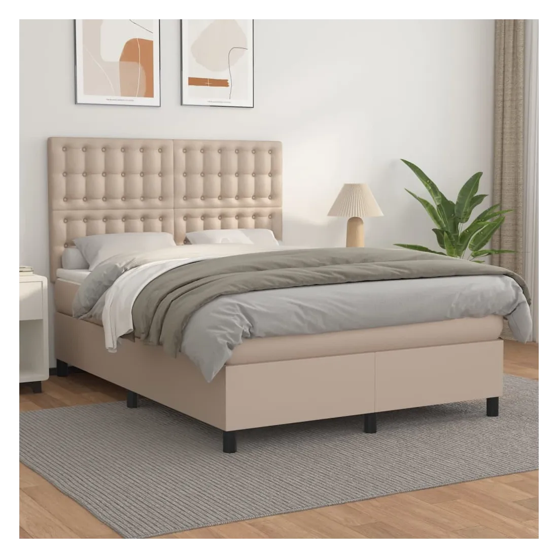 Utilisez ce lit à sommier pour profiter d'une nuit de sommeil réparatrice ! Il vous offre une relaxation maximale et un sommeil agréable. Similicuir durable : le similicuir de qualité supérieure est un matériau très durable. Il est résistant aux taches, ce qui le rend facile à nettoyer avec un chiffon humide. La surface lisse donne également un aspect luxueux et la beauté du cuir véritable. Tête de lit pratique : la tête de lit est réglable en hauteur selon vos préférences. La tête de lit vous offre un excellent soutien du dos lorsque vous êtes assis dans votre lit pour lire ou regarder la télévision. Matelas à ressorts ensachés : le ressort ensaché individuel intégré est connu pour sa très haute qualité tout en assurant un haut niveau de durabilité et d'adaptabilité. Il peut absorber