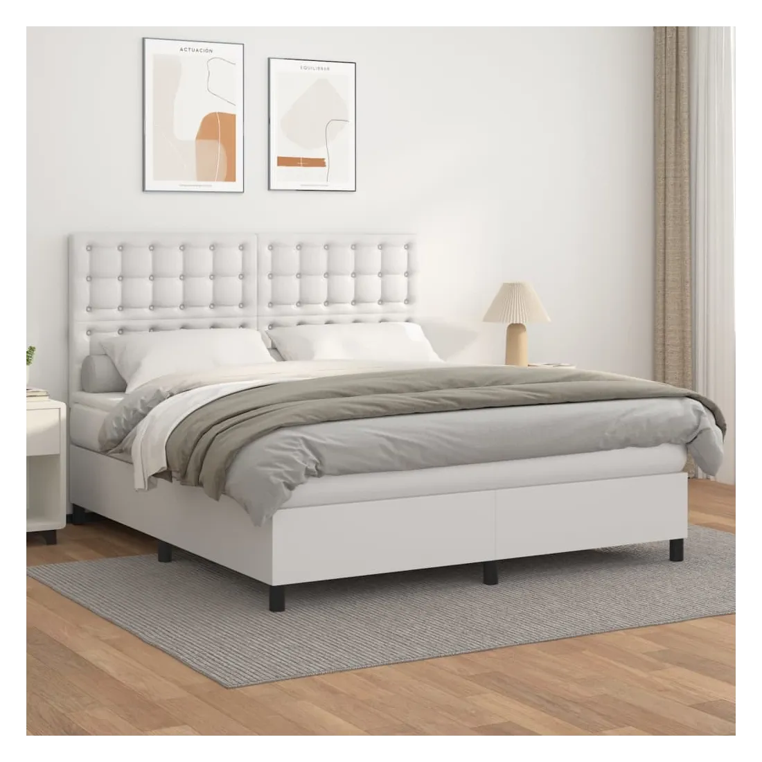 Sommier à lattes de lit avec matelas Blanc 180x200cm Similicuir