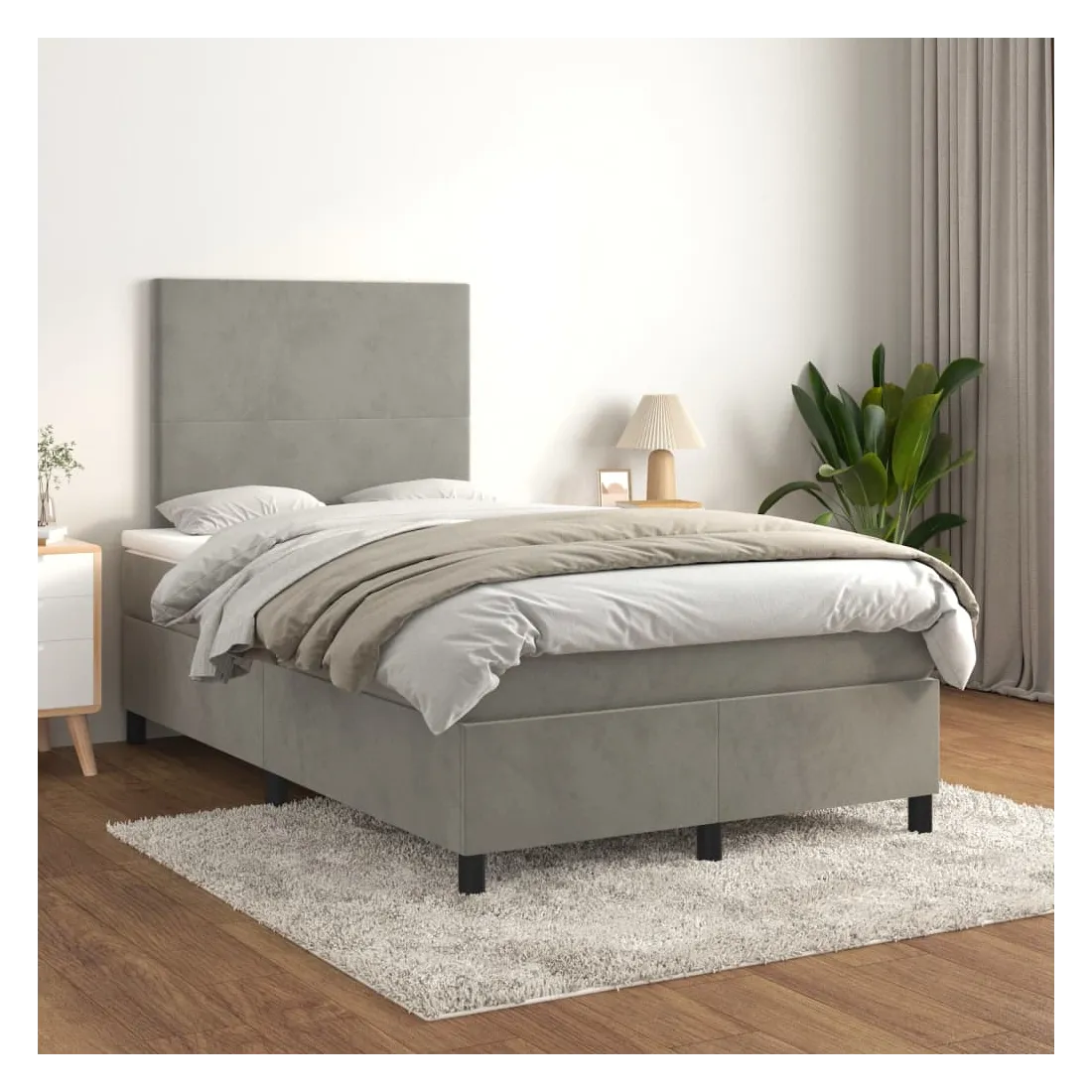Utilisez ce lit à sommier pour profiter d'une nuit de sommeil réparatrice ! Il vous offre une relaxation maximale et un sommeil agréable. Velours doux : le velours est un tissu doux et luxueux qui se reconnaît à son tas dense de fibres uniformément coupées qui ont une touche lisse. Le tissu en velours présente un toucher doux distinctif, ce qui le rend confortable au toucher.Tête de lit pratique : la tête de lit est réglable en hauteur selon vos préférences. La tête de lit vous offre un excellent soutien du dos lorsque vous êtes assis dans votre lit pour lire ou regarder la télévision.Matelas à ressorts ensachés : le ressort ensaché individuel intégré est connu pour sa très haute qualité tout en assurant un haut niveau de durabilité et d'adaptabilité. Il peut absorber efficacement le bruit et les chocs causés par les sauts et les rotations.Support moyen-dur : ce matelas de lit offre une stabilité accrue et juste le niveau de fermeté sans sacrifier le confort. Il est donc idéal pour les personnes qui dorment sur le dos ou sur le ventre.Protège-matelas doux pour la peau : le protège-matelas est recouvert d'un tissu résistant et doux pour la peau, ce qui le rend souple et confortable. Remarque :Pour des raisons d'hygiène, le matelas ne peut pas être retourné si l'emballage est retiré ou ouvert.Chaque produit est livré avec un manuel de montage dans la boîte pour un montage facile.
