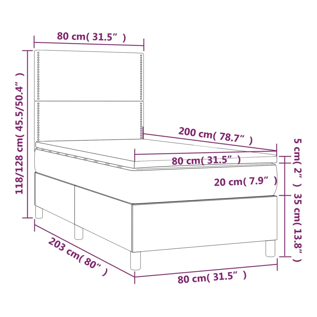 • Dimensions: 203 x 80 x 118/128 cm (L x l x H)