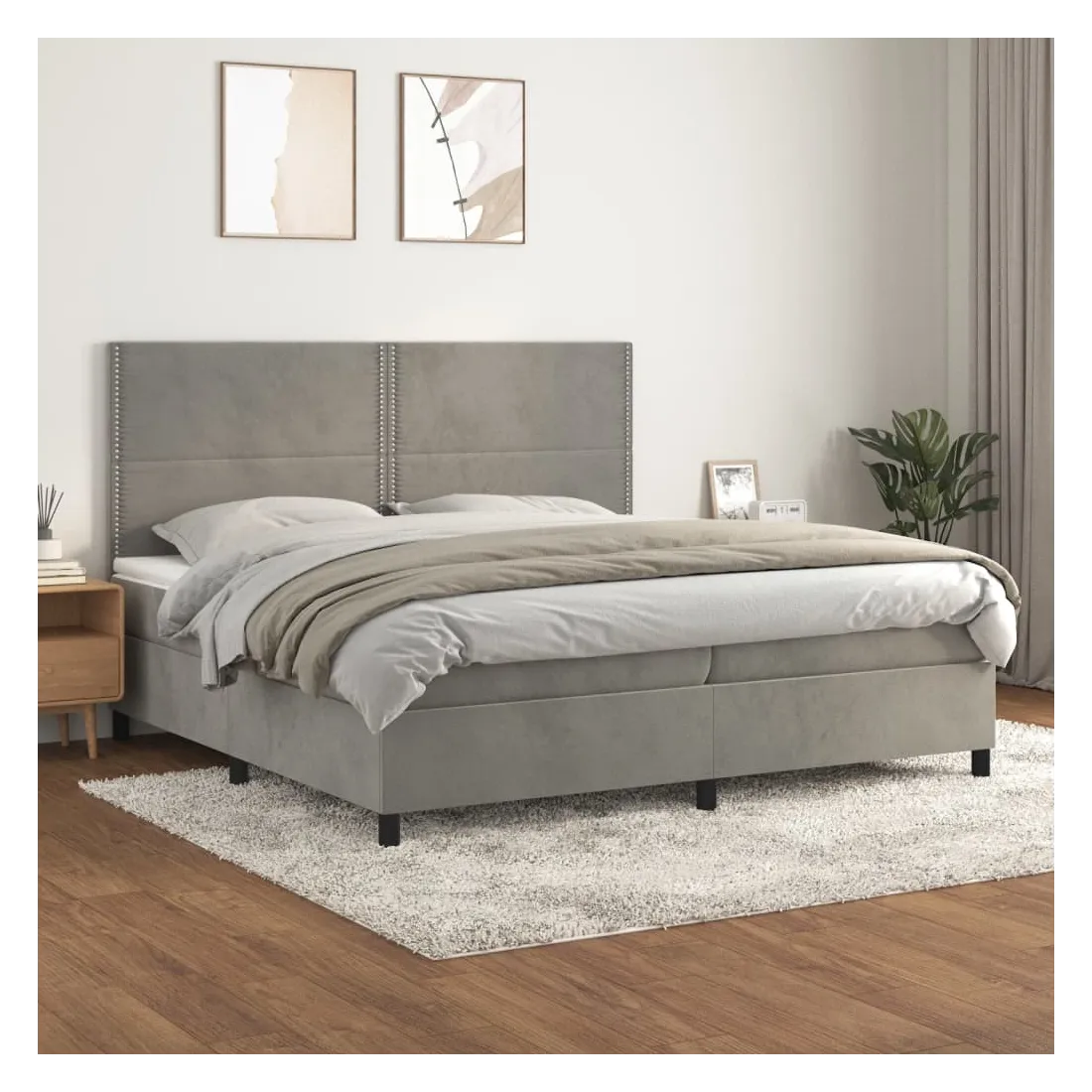 Utilisez ce lit à sommier pour profiter d'une nuit de sommeil réparatrice ! Il vous offre une relaxation maximale et un sommeil agréable. Velours doux : le velours est un tissu doux et luxueux qui se reconnaît à son tas dense de fibres uniformément coupées qui ont une touche lisse. Le tissu en velours présente un toucher doux distinctif, ce qui le rend confortable au toucher. Tête de lit pratique : la tête de lit est réglable en hauteur selon vos préférences. La tête de lit vous offre un excellent soutien du dos lorsque vous êtes assis dans votre lit pour lire ou regarder la télévision. Matelas à ressorts ensachés : le ressort ensaché individuel intégré est connu pour sa très haute qualité tout en assurant un haut niveau de durabilité et d'adaptabilité. Il peut absorber efficacement le