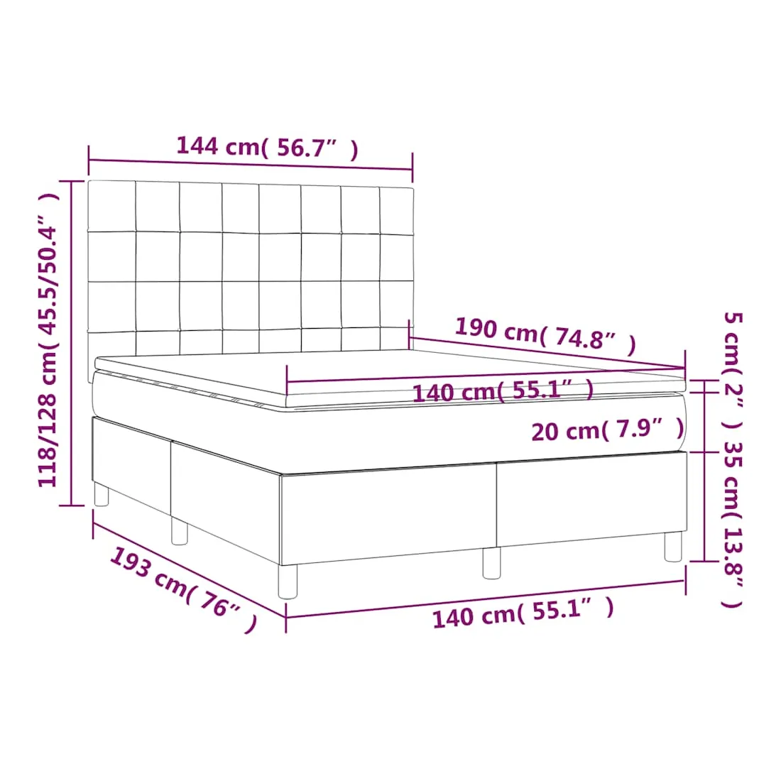 • Dimensions : 140 x 190 x 20 cm (l x L x H)
