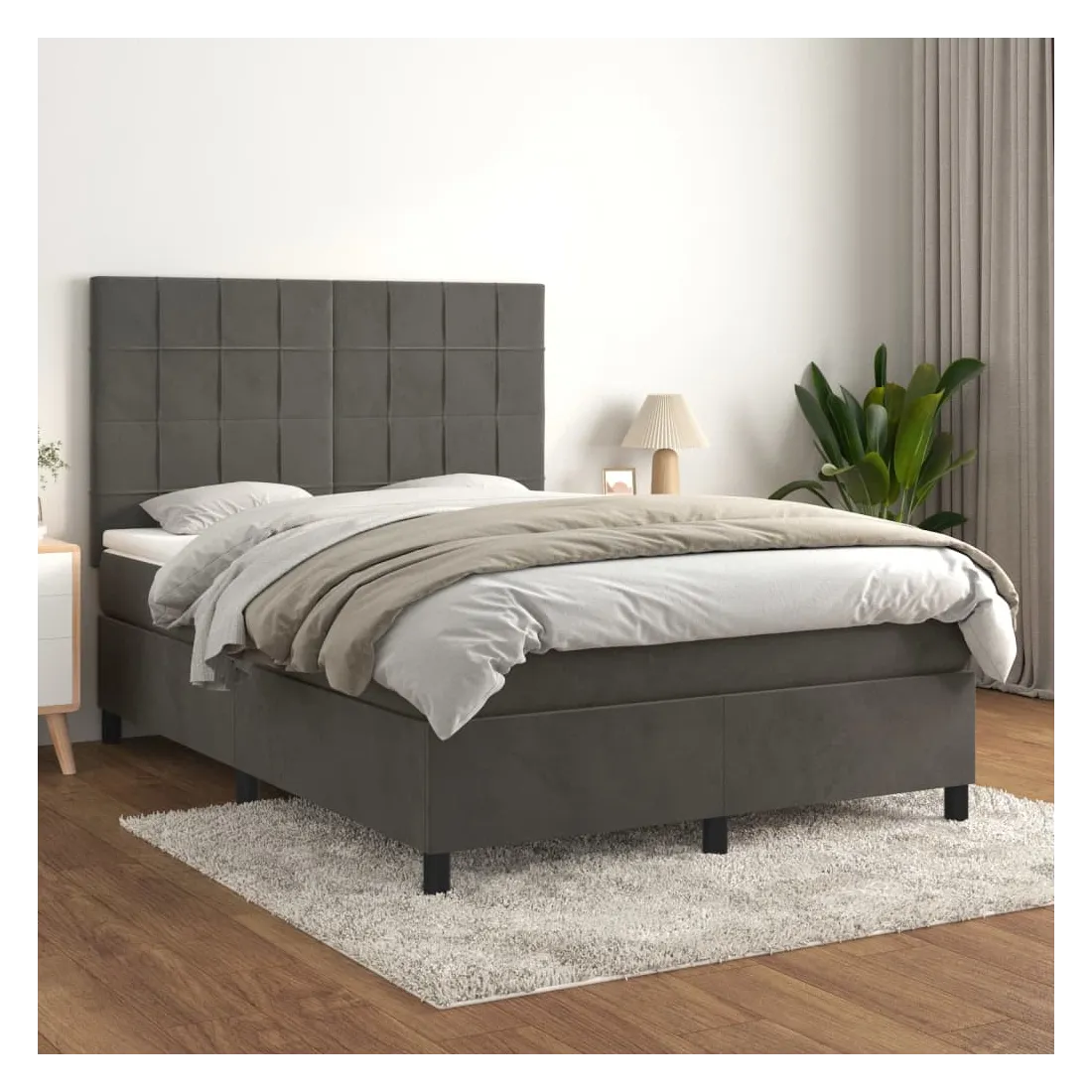 Utilisez ce lit à sommier pour profiter d'une nuit de sommeil réparatrice ! Il vous offre une relaxation maximale et un sommeil agréable. Velours doux : le velours est un tissu doux et luxueux qui se reconnaît à son tas dense de fibres uniformément coupées qui ont une touche lisse. Le tissu en velours présente un toucher doux distinctif, ce qui le rend confortable au toucher.Tête de lit pratique : la tête de lit est réglable en hauteur selon vos préférences. La tête de lit vous offre un excellent soutien du dos lorsque vous êtes assis dans votre lit pour lire ou regarder la télévision.Matelas à ressorts ensachés : le ressort ensaché individuel intégré est connu pour sa très haute qualité tout en assurant un haut niveau de durabilité et d'adaptabilité. Il peut absorber efficacement le bruit et les chocs causés par les sauts et les rotations.Support moyen-dur : ce matelas de lit offre une stabilité accrue et juste le niveau de fermeté sans sacrifier le confort. Il est donc idéal pour les personnes qui dorment sur le dos ou sur le ventre.Protège-matelas doux pour la peau : le protège-matelas est recouvert d'un tissu résistant et doux pour la peau, ce qui le rend souple et confortable. Remarque :Pour des raisons d'hygiène, le matelas ne peut pas être retourné si l'emballage est retiré ou ouvert.Chaque produit est livré avec un manuel de montage dans la boîte pour un montage facile.