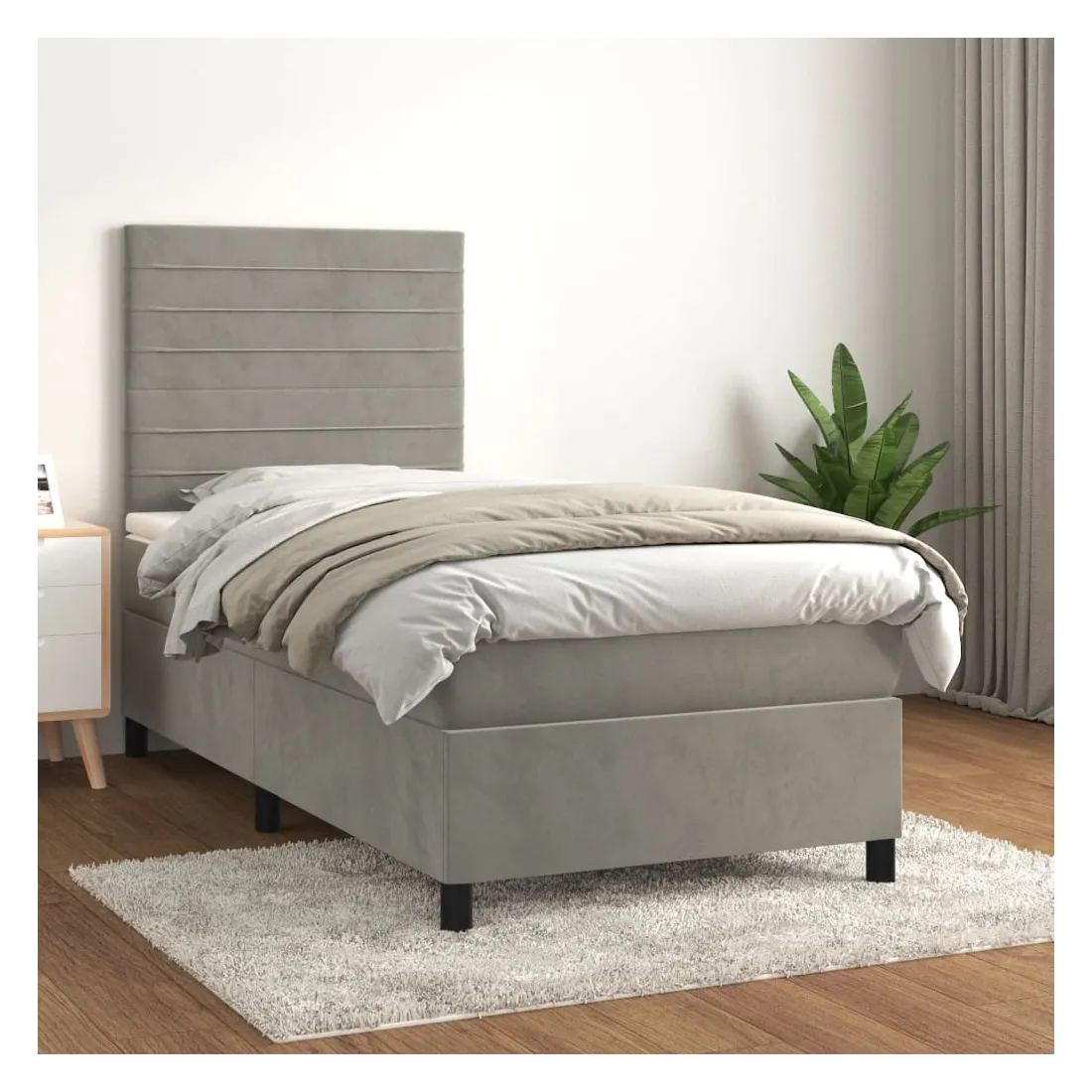 Sommier à lattes de lit et matelas Gris clair 90x190 cm Velours