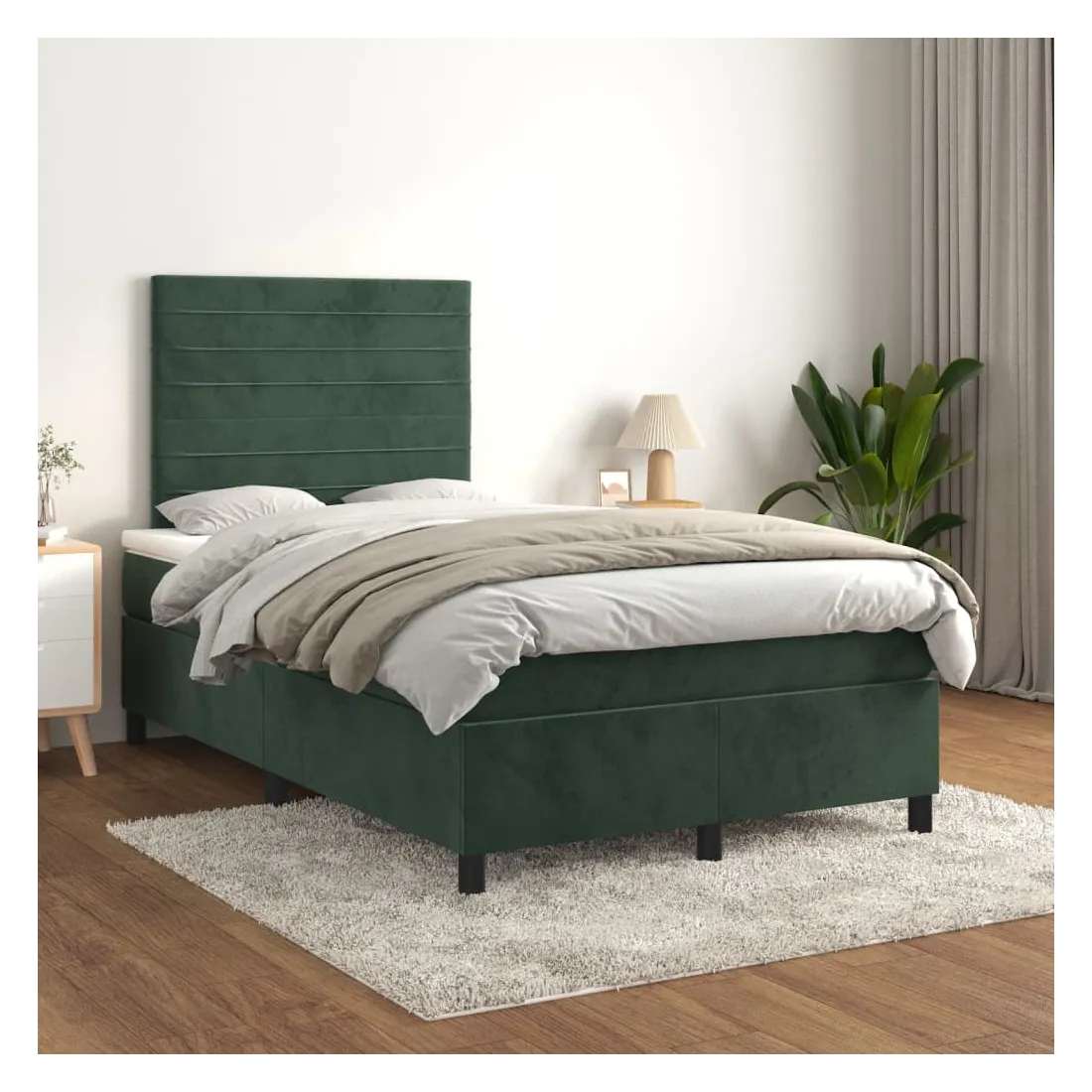 Utilisez ce lit à sommier pour profiter d'une nuit de sommeil réparatrice ! Il vous offre une relaxation maximale et un sommeil agréable. Velours doux : le velours est un tissu doux et luxueux qui se reconnaît à son tas dense de fibres uniformément coupées qui ont une touche lisse. Le tissu en velours présente un toucher doux distinctif, ce qui le rend confortable au toucher.Tête de lit pratique : la tête de lit est réglable en hauteur selon vos préférences. La tête de lit vous offre un excellent soutien du dos lorsque vous êtes assis dans votre lit pour lire ou regarder la télévision.Matelas à ressorts ensachés : le ressort ensaché individuel intégré est connu pour sa très haute qualité tout en assurant un haut niveau de durabilité et d'adaptabilité. Il peut absorber efficacement le bruit et les chocs causés par les sauts et les rotations.Support moyen-dur : ce matelas de lit offre une stabilité accrue et juste le niveau de fermeté sans sacrifier le confort. Il est donc idéal pour les personnes qui dorment sur le dos ou sur le ventre.Protège-matelas doux pour la peau : le protège-matelas est recouvert d'un tissu résistant et doux pour la peau, ce qui le rend souple et confortable. Remarque :Pour des raisons d'hygiène, le matelas ne peut pas être retourné si l'emballage est retiré ou ouvert.Chaque produit est livré avec un manuel de montage dans la boîte pour un montage facile.