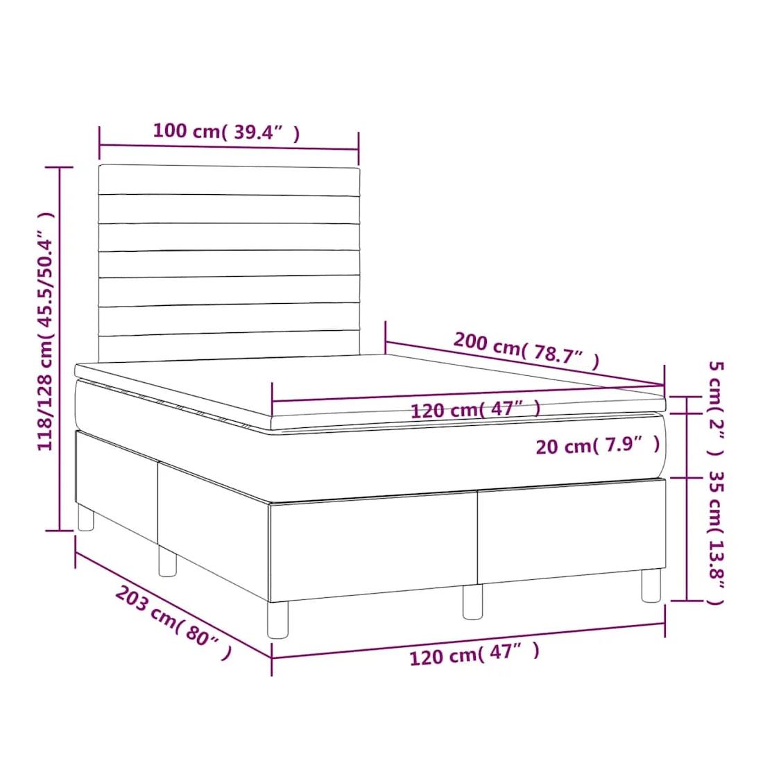 - Dimensions: 203 x 120 x 118/128 cm (L x l x H)