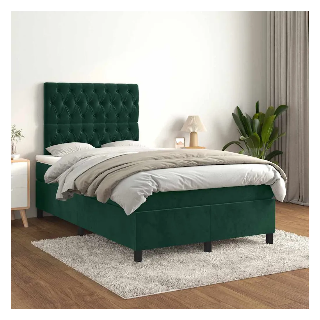 Sommier à lattes de lit et matelas Vert foncé 120x200cm Velours