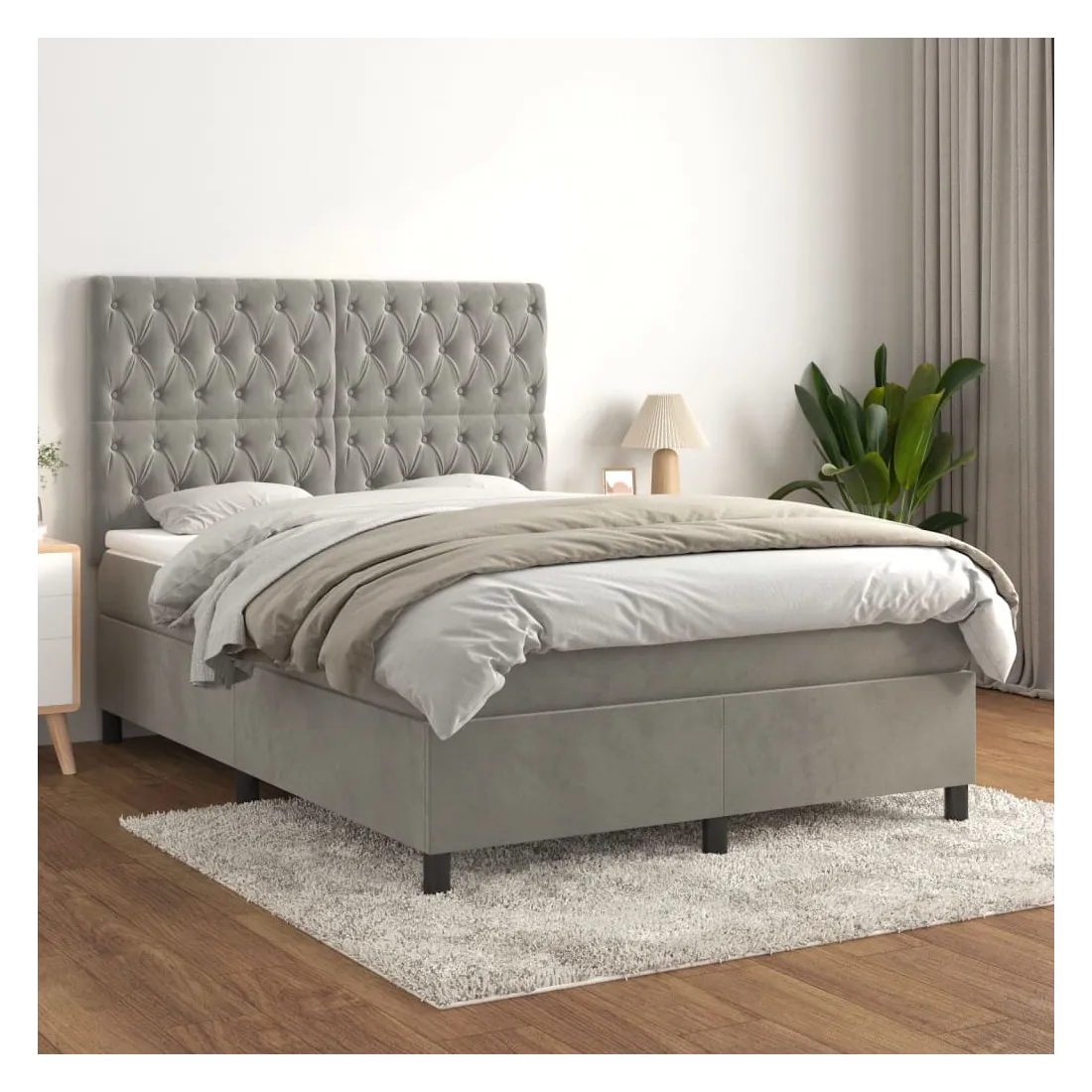 Sommier à lattes de lit et matelas Gris clair 140x190cm Velours