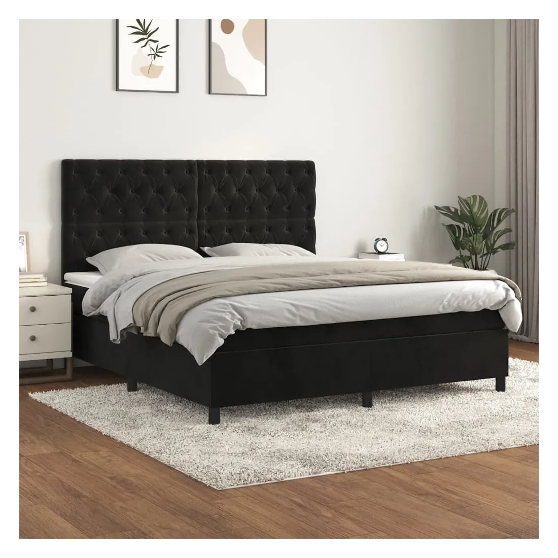 Sommier à lattes de lit et matelas Noir 160x200 cm Velours
