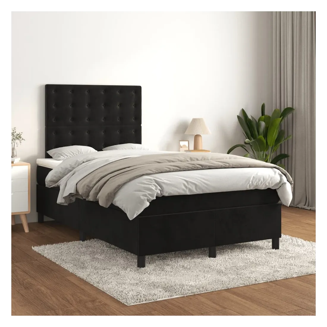 Sommier à lattes de lit avec matelas Noir 120x200 cm Velours