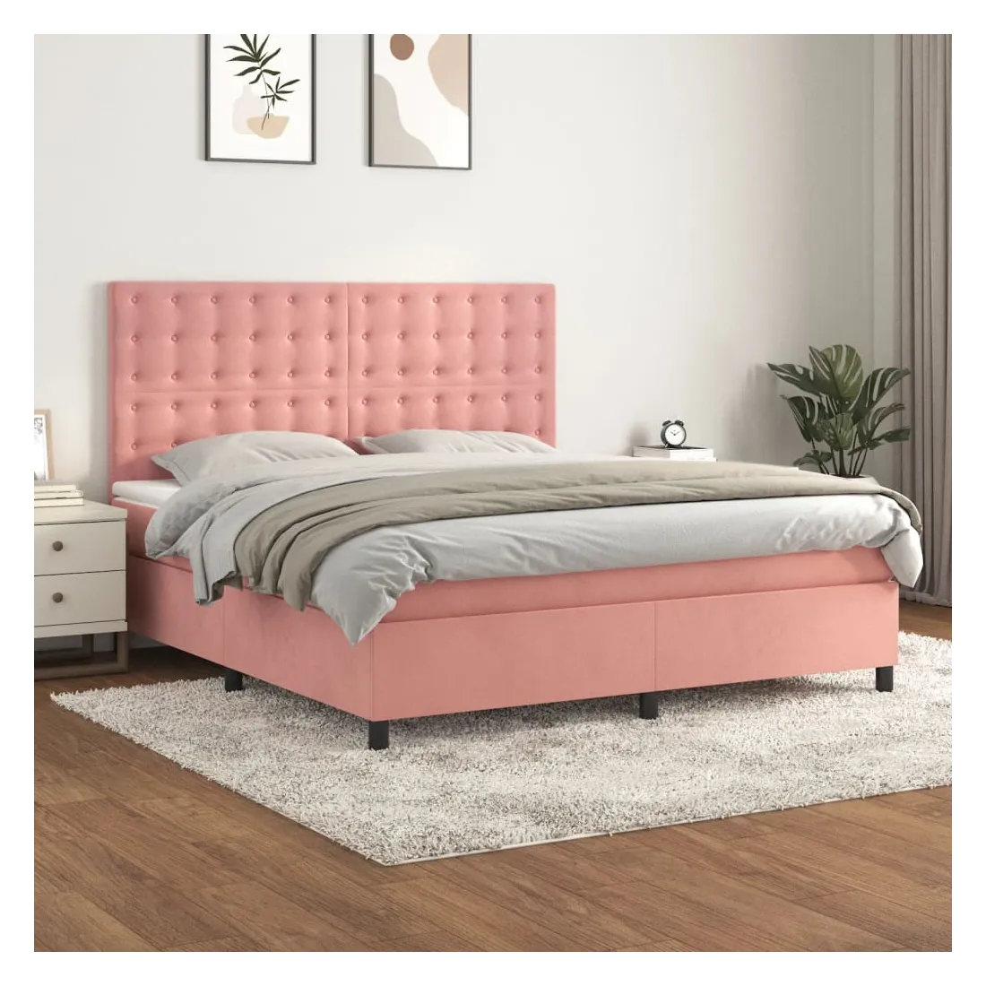 Utilisez ce lit à sommier pour profiter d'une nuit de sommeil réparatrice ! Il vous offre une relaxation maximale et un sommeil agréable. Velours doux : le velours est un tissu doux et luxueux qui se reconnaît à son tas dense de fibres uniformément coupées qui ont une touche lisse. Le tissu en velours présente un toucher doux distinctif, ce qui le rend confortable au toucher.Tête de lit pratique : la tête de lit est réglable en hauteur selon vos préférences. La tête de lit vous offre un excellent soutien du dos lorsque vous êtes assis dans votre lit pour lire ou regarder la télévision.Matelas à ressorts ensachés : le ressort ensaché individuel intégré est connu pour sa très haute qualité tout en assurant un haut niveau de durabilité et d'adaptabilité. Il peut absorber efficacement le bruit et les chocs causés par les sauts et les rotations.Support moyen-dur : ce matelas de lit offre une stabilité accrue et juste le niveau de fermeté sans sacrifier le confort. Il est donc idéal pour les personnes qui dorment sur le dos ou sur le ventre.Protège-matelas doux pour la peau : le protège-matelas est recouvert d'un tissu résistant et doux pour la peau, ce qui le rend souple et confortable. Remarque :Pour des raisons d'hygiène, le matelas ne peut pas être retourné si l'emballage est retiré ou ouvert.Chaque produit est livré avec un manuel de montage dans la boîte pour un montage facile.