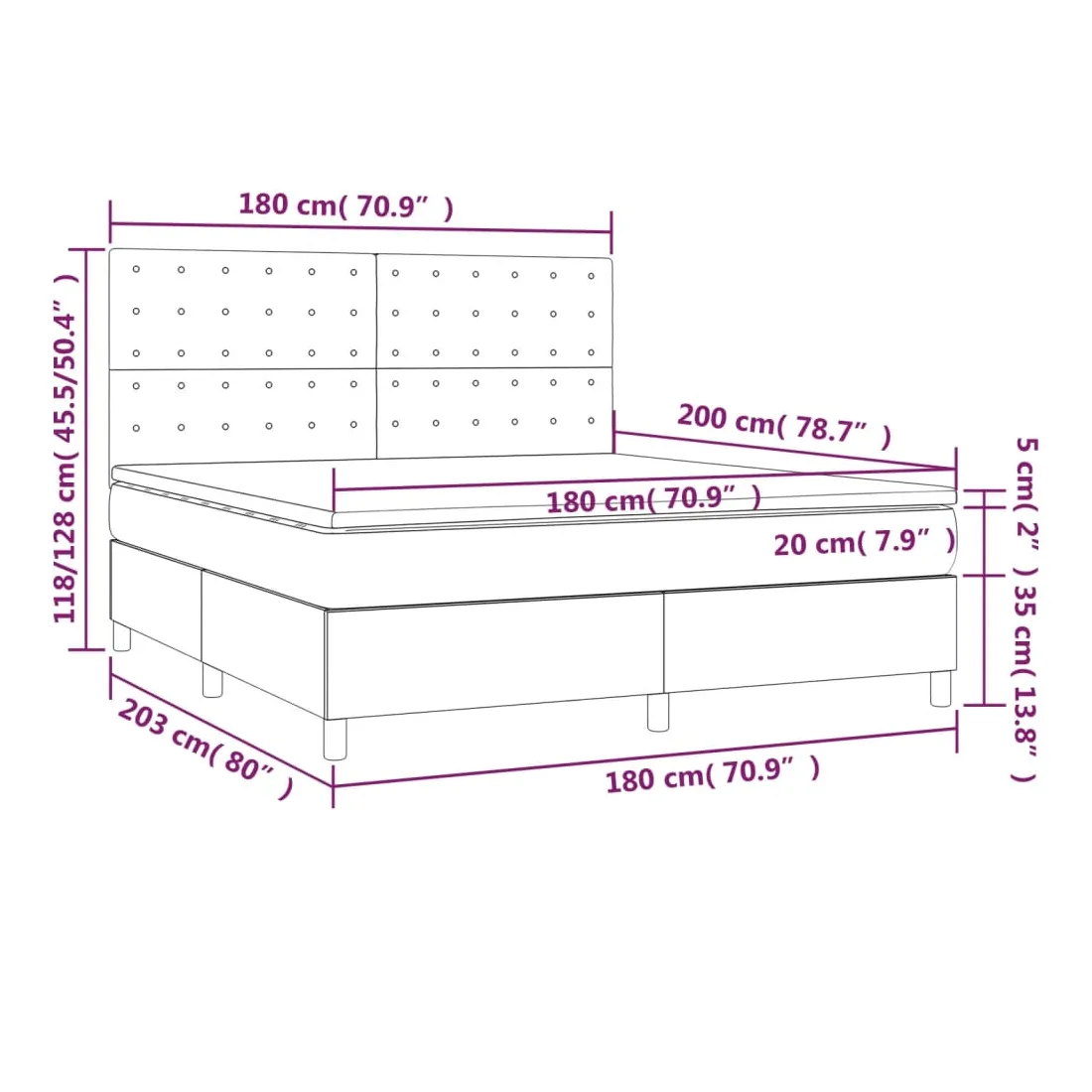 • Dimensions : 180 x 200 x 20 cm (l x L x H)