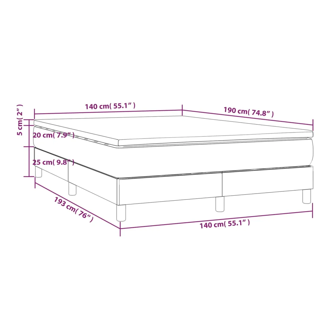 • Dimensions : 193 x 140 x 25 cm (L x l x H)
