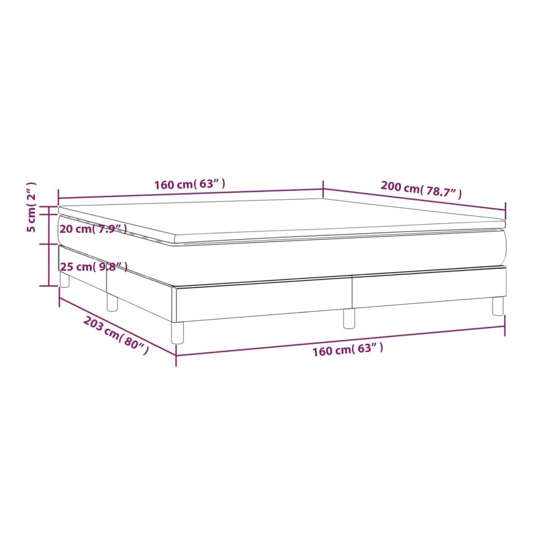 - Dimensions : 203 x 160 x 25 cm (L x l x H)