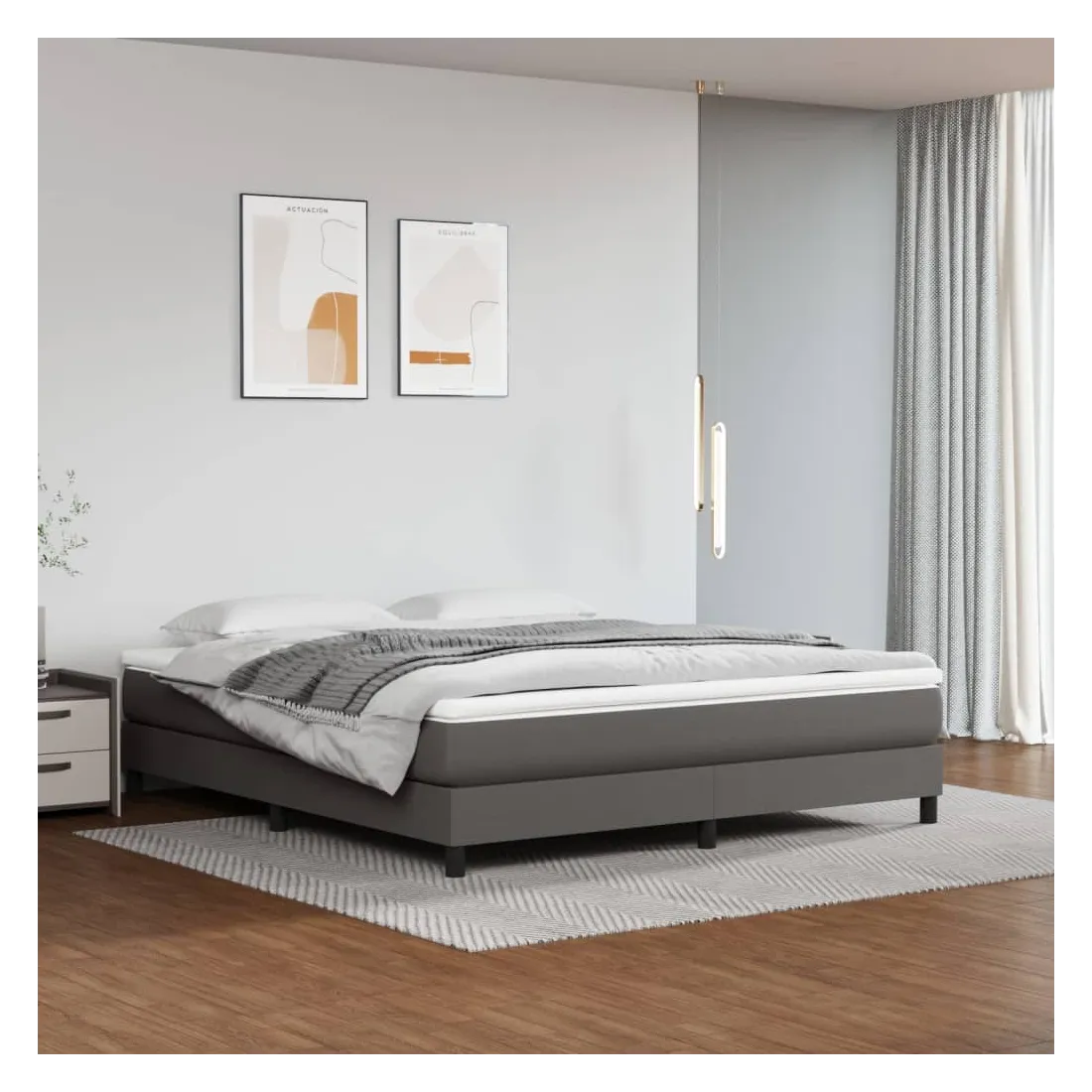 Utilisez ce lit à sommier pour profiter d'une nuit de sommeil réparatrice ! Il vous offre une relaxation maximale et un sommeil agréable. Similicuir durable : le similicuir de qualité supérieure est un matériau très durable. Il est résistant aux taches, ce qui le rend facile à nettoyer avec un chiffon humide. La surface lisse donne également un aspect luxueux et la beauté du cuir véritable.Matelas à ressorts ensachés : le ressort ensaché individuel intégré est connu pour sa très haute qualité tout en assurant un haut niveau de durabilité et d'adaptabilité. Il peut absorber efficacement le bruit et les chocs causés par les sauts et les rotations.Support moyen-dur : ce matelas de lit offre une stabilité accrue et juste le niveau de fermeté sans sacrifier le confort. Il est donc idéal pour les personnes qui dorment sur le dos ou sur le ventre.Protège-matelas doux pour la peau : le protège-matelas est recouvert d'un tissu résistant et doux pour la peau, ce qui le rend souple et confortable.Lattes en contreplaqué : le lit est équipé de lattes en contreplaqué, qui assurent une bonne répartition du poids, garantissant que le matelas reste en place à chaque torsion de votre corps pendant le sommeil. Remarque :Pour des raisons d'hygiène, le matelas ne peut pas être retourné si l'emballage est retiré ou ouvert.Chaque produit est livré avec un manuel de montage dans la boîte pour un montage facile.