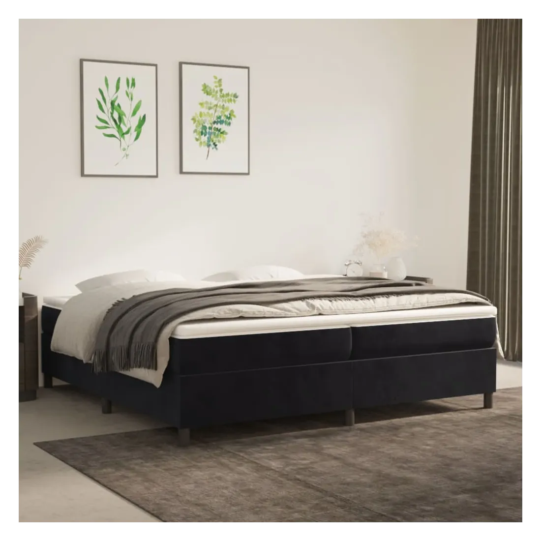 Obtenez une meilleure nuit de sommeil reposante grâce à ce cadre de lit à ressorts ! Il est un supplément accueillant à toute chambre à coucher. Velours doux : le velours est un tissu doux et luxueux qui se reconnaît à son tas dense de fibres uniformément coupées qui ont une touche lisse. Le tissu en velours présente un toucher doux distinctif, ce qui le rend confortable au toucher.Pieds de soutien : le lit est soutenu par des pieds robustes, qui assurent sa stabilité, sa sécurité et sa fermeté.Lattes de contreplaqué : les lattes de contreplaqué assurent une bonne répartition du poids, garantissant que le matelas reste en place à chaque torsion de votre corps pendant le sommeil. Bon à savoir :Un matelas n'est pas inclus avec ce lit. Nous offrons une sélection variée de matelas. Vous pouvez consulter notre boutique pour trouver un matelas assorti.