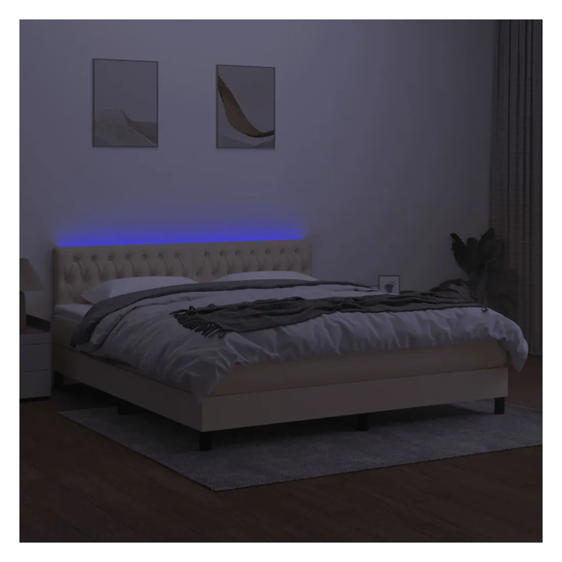 Utilisez ce sommier tapissier avec matelas et LED pour profiter d'un sommeil réparateur ! C'est le point central de votre chambre à coucher. Tissu durable : le tissu présente un aspect simple et épuré, et il est respirant et durable.Tête de lit pratique : la tête de lit est réglable en hauteur selon vos préférences. La tête de lit vous offre un excellent soutien du dos lorsque vous êtes assis dans votre lit pour lire ou regarder la télévision.Bande LED colorée : apportez de l'éclairage dans l'obscurité avec des lumières LED colorées !Matelas à ressorts ensachés : le ressort ensaché individuel intégré est connu pour sa très haute qualité tout en assurant un haut niveau de durabilité et d'adaptabilité. Il peut absorber efficacement le bruit et les chocs causés par les sauts et les rotations.Protège-matelas doux pour la peau : le protège-matelas est recouvert d'un tissu résistant et doux pour la peau, ce qui le rend souple et confortable. Remarque :Pour des raisons d'hygiène, le matelas ne peut pas être retourné si l'emballage est retiré ou ouvert.Chaque produit est livré avec un manuel de montage dans la boîte pour un montage facile.Seule la partie avec un symbole de ciseaux peut être coupée et seule la partie avec l'USB continuera à fonctionner comme avant.Ce produit est doté d'un connecteur USB, mais la source d'alimentation certifiée de USB 5V n'est pas incluse.