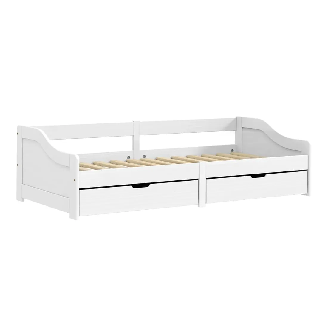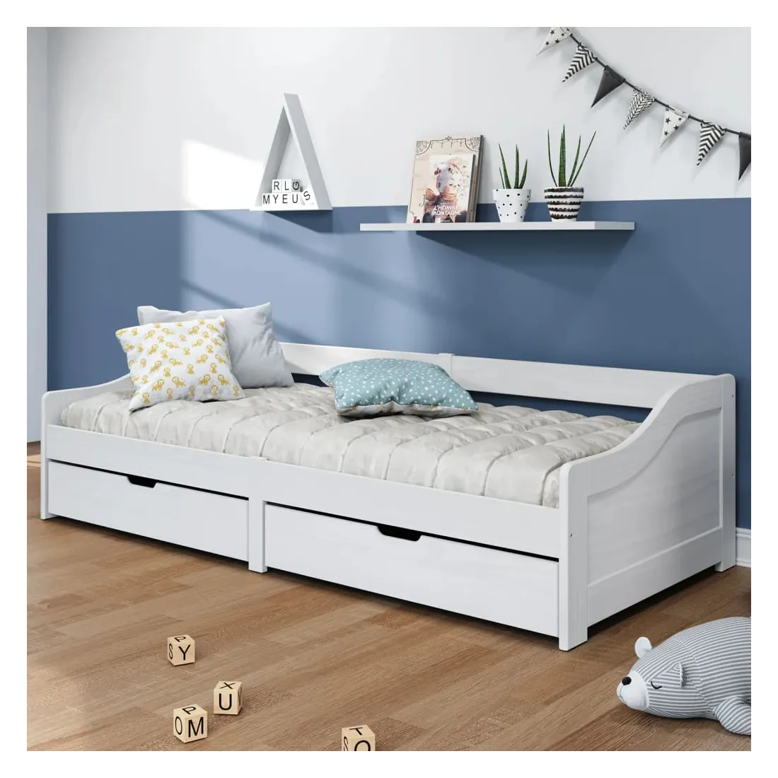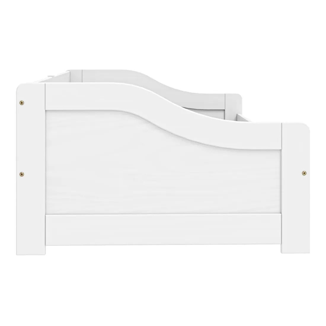 Ce lit de jour polyvalent en bois peut être utilisé comme un lit dans la chambre à coucher et est également idéal comme un canapé dans le salon. Il s'adapte parfaitement à vos différents besoins, vous offrant beaucoup d'espace pour dormir et vous reposer. Bois de pin massif : le bois de pin massif est un matériau naturel magnifique. Le bois de pin a un grain droit et les nœuds donnent au matériau son aspect caractéristique et rustique. Le lit d'appoint est en bois de pin massif, plus stable et durable.Design à lattes : le sommier à lattes en bois permet une meilleure circulation de l'air pour garder le matelas frais plus longtemps, améliorant la capacité de poids du lit et assurant la stabilité.Canapé-lit multifonctionnel : ce lit de jour en bois peut être utilisé comme canapé pendant la journée ou comme lit la nuit, offrant une solution rapide pour accueillir des invités pour la nuit.Espace de rangement supplémentaire : profitez de l'espace sous le canapé pour ranger divers objets. Parfait pour ranger vos vêtements, chaussures, jouets ou couettes. Bon à savoir :Un matelas n'est pas inclus avec ce lit. Nous offrons une sélection variée de matelas. Vous pouvez consulter notre boutique pour trouver un matelas assorti.