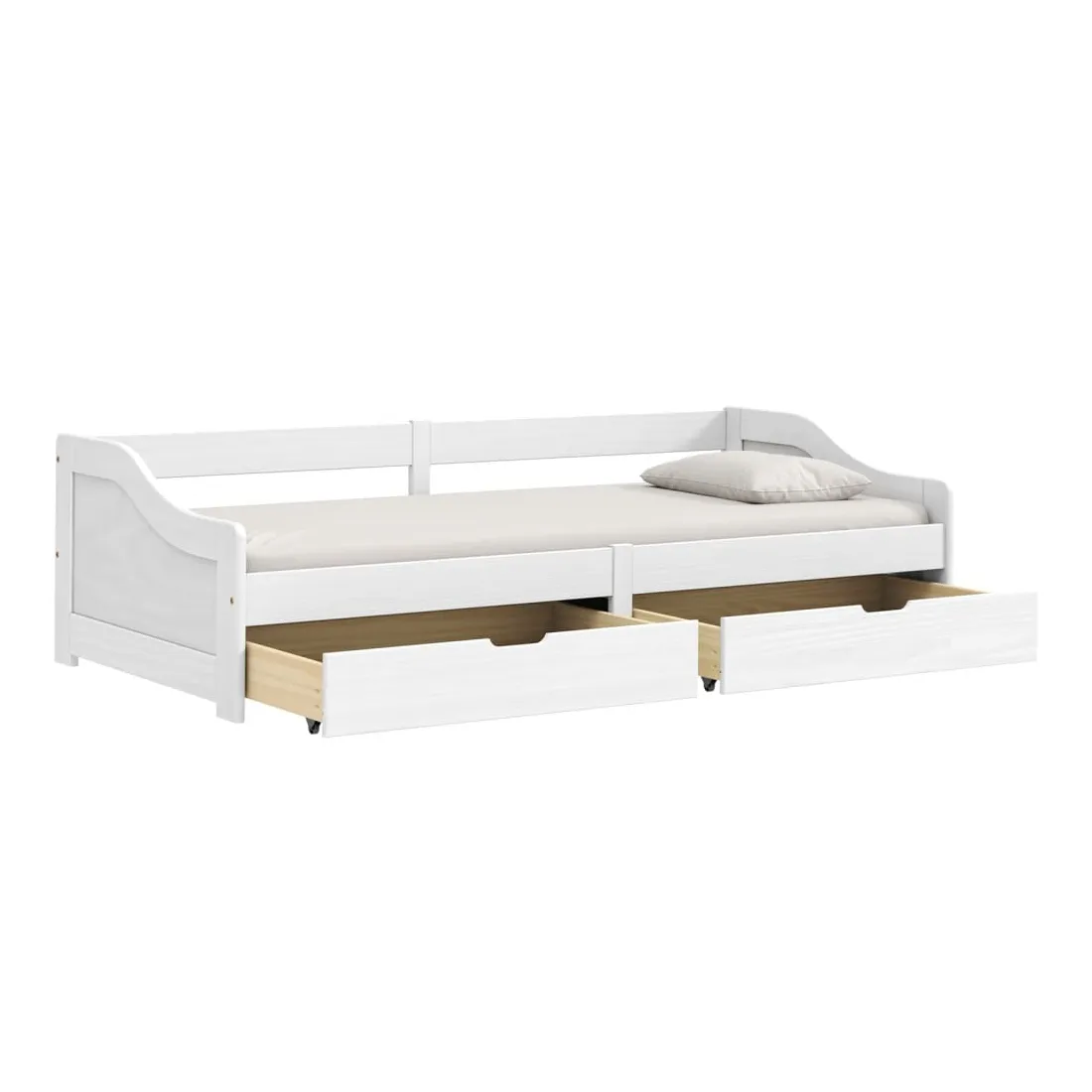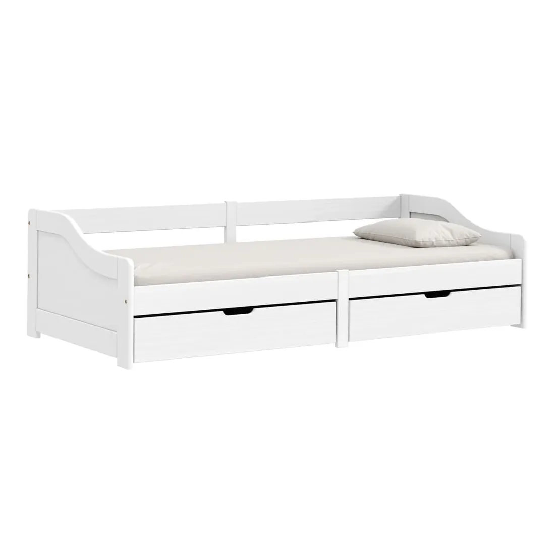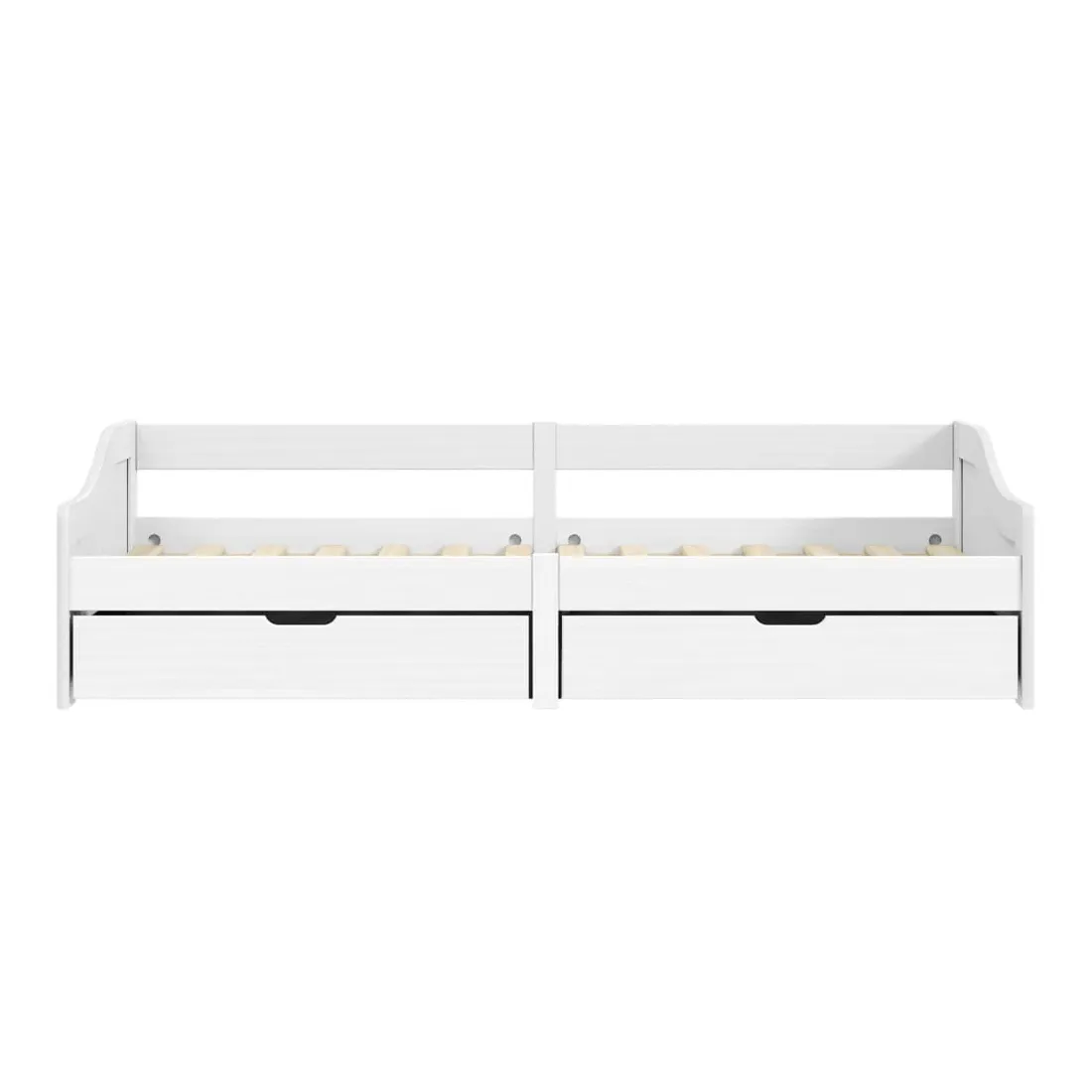 Ce lit de jour polyvalent en bois peut être utilisé comme un lit dans la chambre à coucher et est également idéal comme un canapé dans le salon. Il s'adapte parfaitement à vos différents besoins, vous offrant beaucoup d'espace pour dormir et vous reposer. Bois de pin massif : le bois de pin massif est un matériau naturel magnifique. Le bois de pin a un grain droit et les nœuds donnent au matériau son aspect caractéristique et rustique. Le lit d'appoint est en bois de pin massif, plus stable et durable.Design à lattes : le sommier à lattes en bois permet une meilleure circulation de l'air pour garder le matelas frais plus longtemps, améliorant la capacité de poids du lit et assurant la stabilité.Canapé-lit multifonctionnel : ce lit de jour en bois peut être utilisé comme canapé pendant la journée ou comme lit la nuit, offrant une solution rapide pour accueillir des invités pour la nuit.Espace de rangement supplémentaire : profitez de l'espace sous le canapé pour ranger divers objets. Parfait pour ranger vos vêtements, chaussures, jouets ou couettes. Bon à savoir :Un matelas n'est pas inclus avec ce lit. Nous offrons une sélection variée de matelas. Vous pouvez consulter notre boutique pour trouver un matelas assorti.