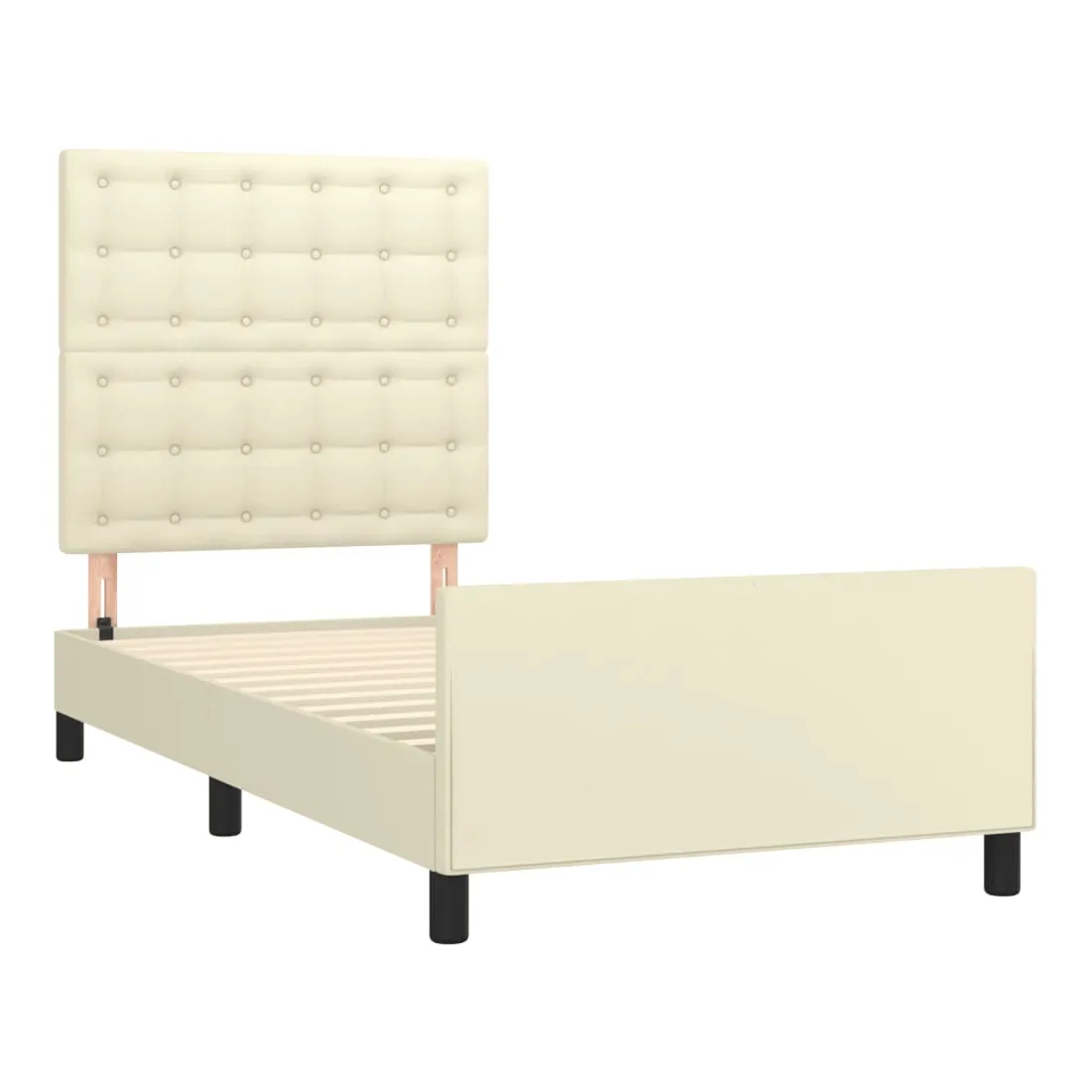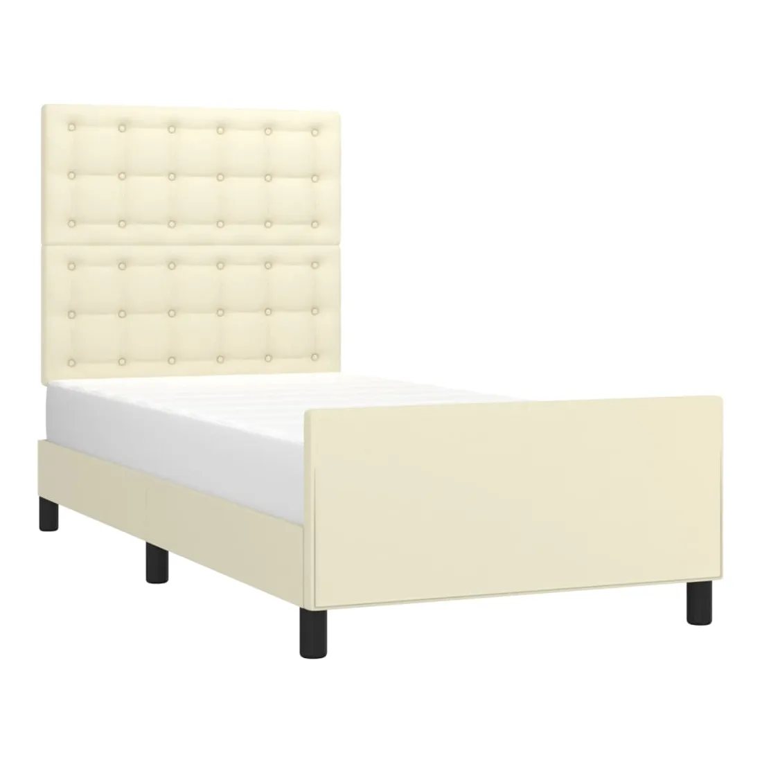 Obtenez une meilleure nuit de sommeil reposante grâce à ce cadre de lit avec tête de lit ! Il est un supplément accueillant à toute chambre à coucher. Similicuir durable : le similicuir de qualité supérieure est un matériau très durable. Il est résistant aux taches, ce qui le rend facile à nettoyer avec un chiffon humide. La surface lisse donne également un aspect luxueux et la beauté du cuir véritable.Hauteur réglable : la tête de lit est réglable en hauteur selon vos préférences.Pieds de soutien : le lit est soutenu par des pieds robustes, qui assurent sa stabilité, sa sécurité et sa fermeté.Lattes de contreplaqué : les lattes de contreplaqué assurent une bonne répartition du poids, garantissant que le matelas reste en place à chaque torsion de votre corps pendant le sommeil.Excellent soutien : la tête de lit vous offre un excellent soutien du dos lorsque vous êtes assis dans votre lit pour lire ou regarder la télévision. Remarque :La livraison comprend uniquement un cadre de lit. Le matelas n'est pas inclus. Vous pouvez consulter notre boutique pour trouver les matelas assortis.Chaque produit est livré avec un manuel de montage dans la boîte pour un montage facile.