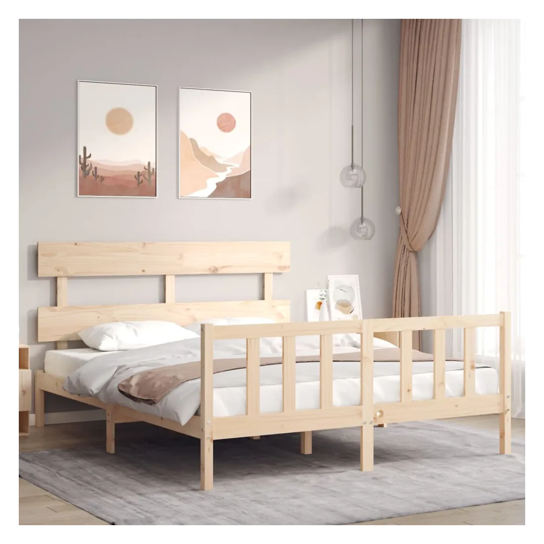 Profitez d'une bonne nuit de sommeil dans ce cadre de lit en bois ! Il sera un supplément pratique et décoratif à votre intérieur. Matériau durable : le bois de pin massif est un matériau naturel magnifique. Le bois de pin a un grain droit et les nœuds donnent au matériau son aspect caractéristique et rustique. Fabriqué en pin massif, ce lit est robuste et durable.Lattes en contreplaqué : les lattes en contreplaqué assurent une bonne répartition du poids, garantissant à votre matelas le soutien et la respirabilité dont il a tant besoin.Tête de lit et pied de lit fonctionnels : la tête et le pied de lit du lit en bois peuvent maintenir votre matelas en place. De plus, la tête de lit vous offre un excellent soutien du dos lorsque vous vous asseyez dans le lit pour lire ou regarder la télévision. Bon à savoir : Un matelas n'est pas inclus avec ce lit. Nous offrons une sélection variée de matelas. Vous pouvez consulter notre boutique pour trouver un matelas assorti.